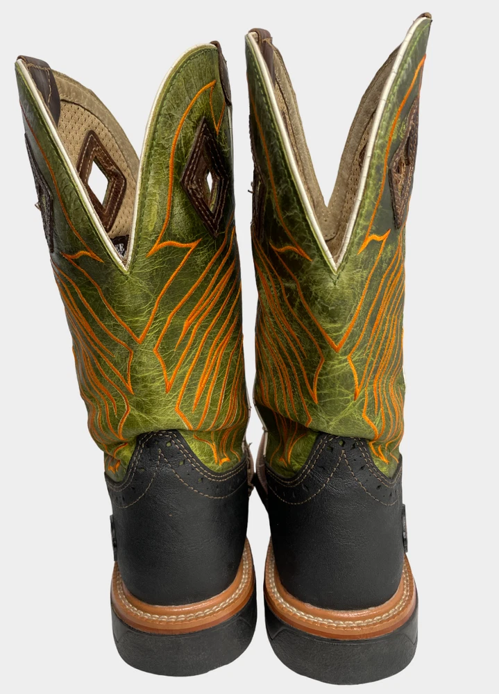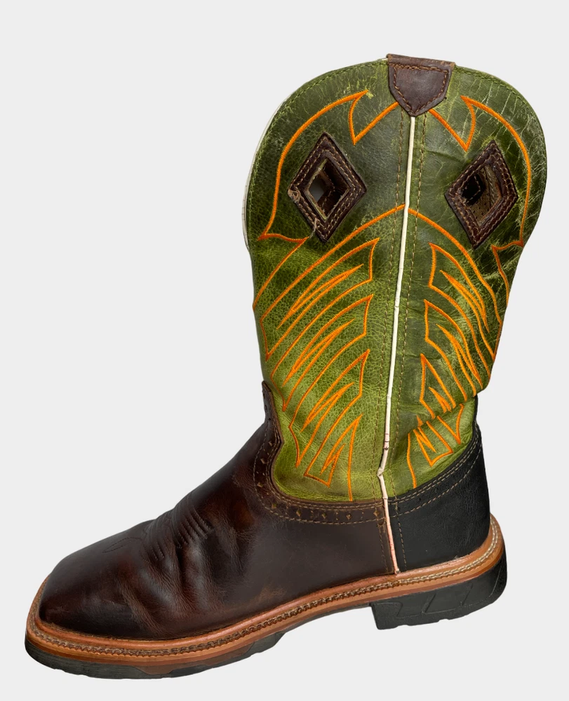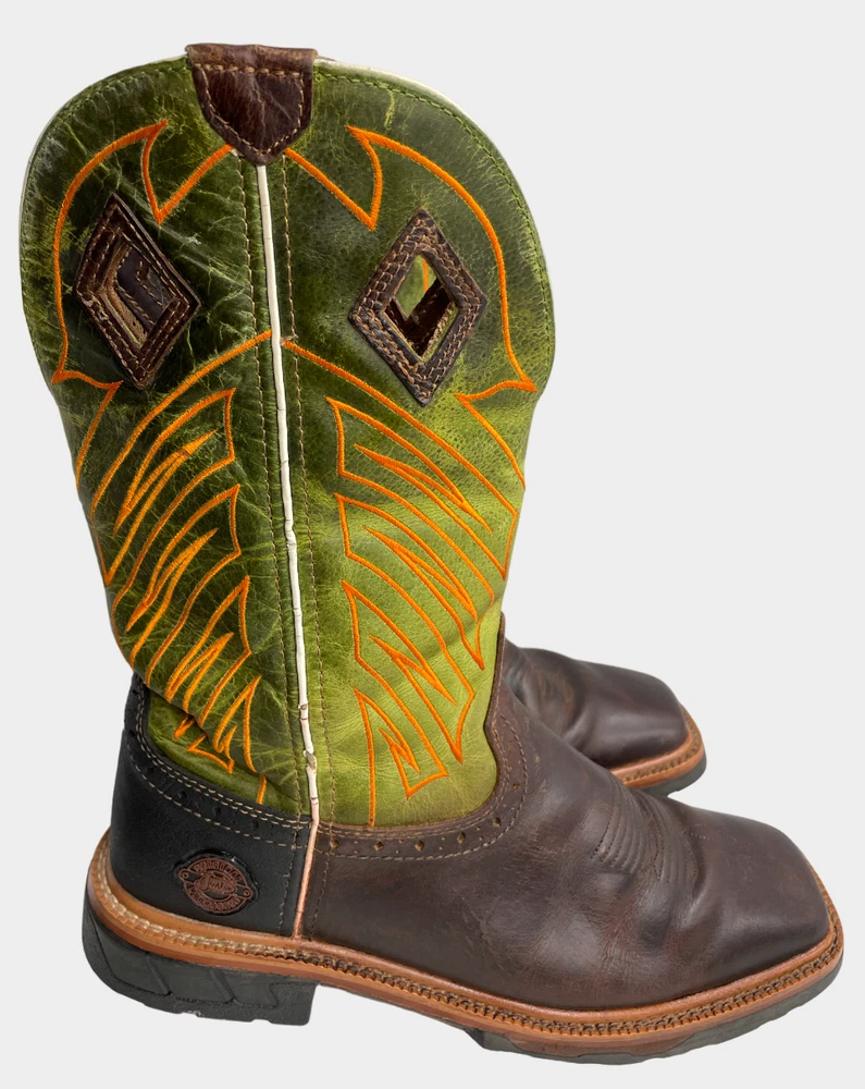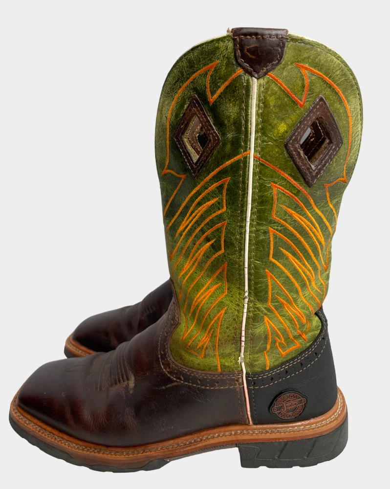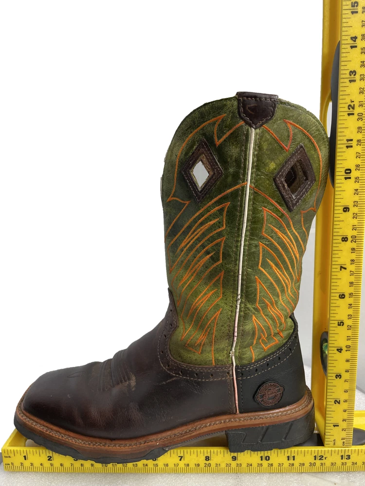 Justin WK4970 Green Wide Leather Western Cowboy Work Square Toe Boots Men's 8 EE
