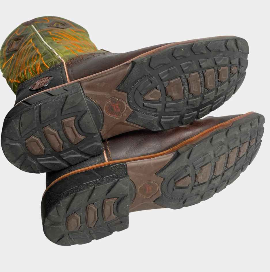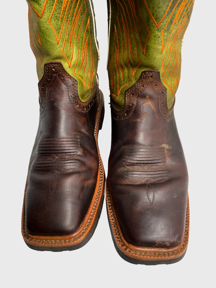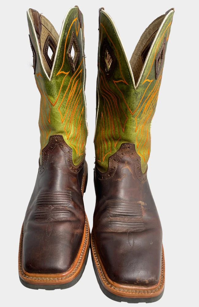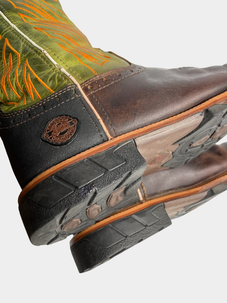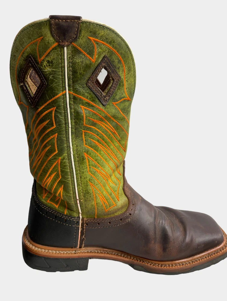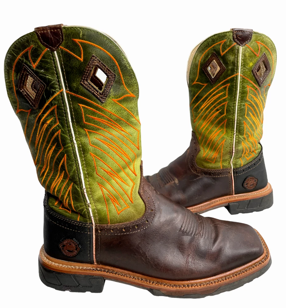 Justin WK4970 Green Wide Leather Western Cowboy Work Square Toe Boots Men's 8 EE