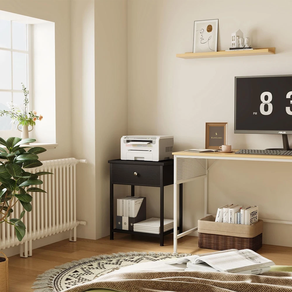 Modern Nightstand with USB Charging Station & Adjustable Fabric Drawer