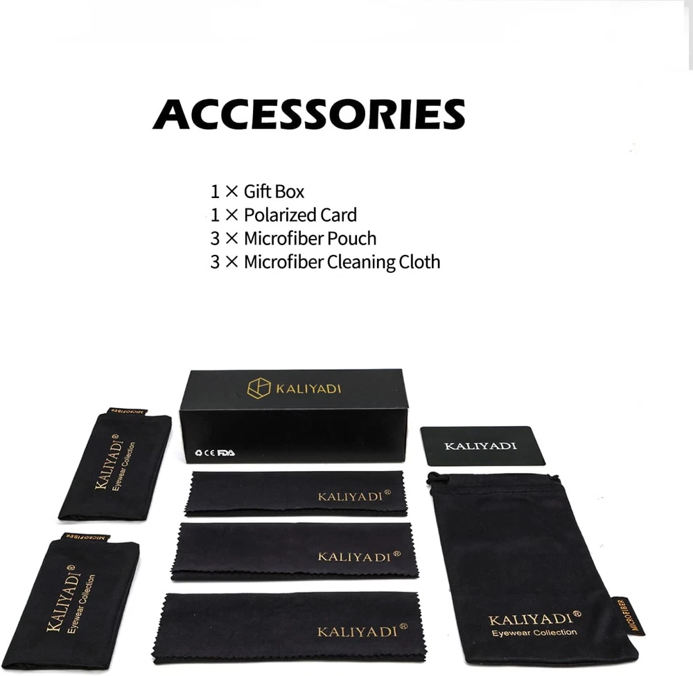 Store New Arrivals Add to Favorite View Feedback Contact KALIYADI Classic Aviator Sunglasses for Men Women Driving Sun Glasses Polarized Description Department unisex-adult Color F (3 Pack) Black/Blackish Green/Brown Lens Width 58 Millimeters Product Description 1 Polarized Lens 2 Soft Nose Pads 3 Solid Hinge KALIYADI HD Polarized Lens Choices Light Transmission(Category 3) Solid Grey 16.29%, Solid Brown 14.49%, Solid Blackish Green 15.37% Light Transmission(Category 3) Blue 8.12%, Pink 12.88%, Red 13.79%, Green 9.82%, Purple 11.95%, Silver 11.56% Light Transmission(Category 3) Gradient Grey 17.2%, Gradient G15 15.9%, Gradient Brown 15.2%, Gradient Wine 13.4% Lens Technology (UV 400) Coated with 14-layers of REVO films Lens Technology (UV 400) Coated with 14-layers of REVO films + Reflective coating Lens Technology (UV 400) Coated with 14-layers of REVO films + Gradient dyeing Suitable Occasion (Polarized) Travel,Driving,Fishing,Party,Shopping, etc. Suitable Occasion (Polarized) Travel,Driving,Fishing,Party,Shopping Suitable Occasion (Polarized) Driving, Travel Out door sports Out door sports Out door sports Work in the condition of strong and bright light 1 Ready For Golf 2 Ready For Hiking 3 Ready For Fshing 4 Ready For Driving 5 Ready For Ball More Styles form KALIYADI Add to Cart Add to Cart Add to Cart Add to Cart Customer Reviews 4.4 out of 5 stars 14,342 4.3 out of 5 stars 1,251 4.5 out of 5 stars 5,853 4.5 out of 5 stars 1,323 4.6 out of 5 stars 1,806 4.6 out of 5 stars 1,179 Price $19.99 $ 19 . 99 $15.99 $ 15 . 99 $15.99 $ 15 . 99 $15.99 $ 15 . 99 $16.99 $ 16 . 99 $15.99 $ 15 . 99 Lens Colors Black/Brown/G15 Black/Black Black/Black Black/Black/Black Black/Black/Black Dark Blue/Green/Orange Economic Pack $6.66/Pair 7.99/Pair $7.99/Pair $6.66/Pair $6.33/Pair $6.66/Pair Material(Frame/Lens) Metal/Polycarbonate Metal/Polycarbonate Metal/Polycarbonate Composite/Polycarbonate Composite/Polycarbonate Composite/Polycarbonate Lens Width 58mm/2.28in 46mm/1.81in 45mm/1.77in 58mm/2.28in 48mm/1.89in 43mm/1.69in Frame Width 140mm/5.51in 132mm/5.2in 128mm/5.04in 140mm/5.51in 137mm/5.39in 139mm/5.47in UV400 Protection ✔ ✔ ✔ ✔ ✔ ✔ Polarized Lens ✔ ✔ ✔ ✔ ✔ ✔ Combo Pack ✔ ✔ ✔ ✔ ✔ ✔ ABOUT US We offer the best prices around on high quality products. Our E-store includes media such as books, movies, music and games while offering electronics, toys, sporting apparel, clothing, tools, general home, garden items and more. SHIPPING We are always working hard to ensure your package arrives as soon as possible. Please understand that some factors like weather, high postal traffic, and the performance of shipping companies are outside of our control. We offer free shipping to the lower 48 states and ship within 2 business days of payment, usually sooner. We do not accept P.O. Boxes. Please provide a physical address. RETURNS We offer a 30-Day Return Policy on items which you are not completely satisfied with. You have the option for a full-refund or an exchange of the item. No returns are available on items shipped outside of the USA. PAYMENT We accept PayPal. CONTACT US This page content is yet to come Please ad us to your favorite seller and visit again later Thank You CUSTOMER SATISFACTION We try our very best to make sure every customer is completely satisfied. If there's a problem, message us! We're happy to help.