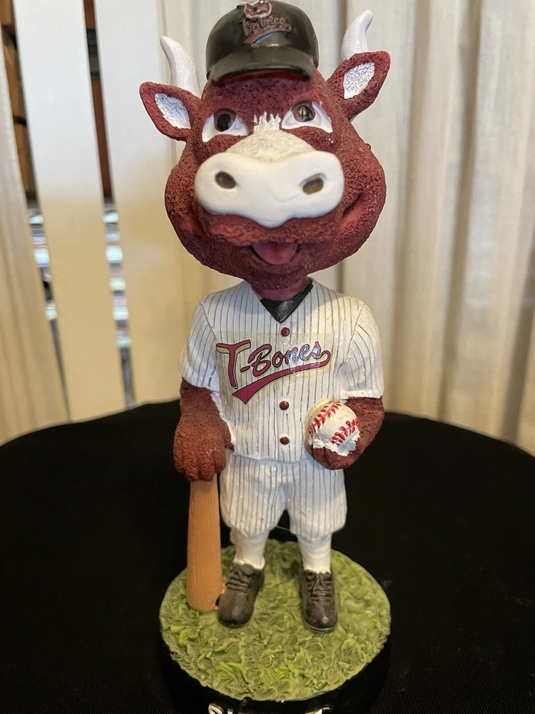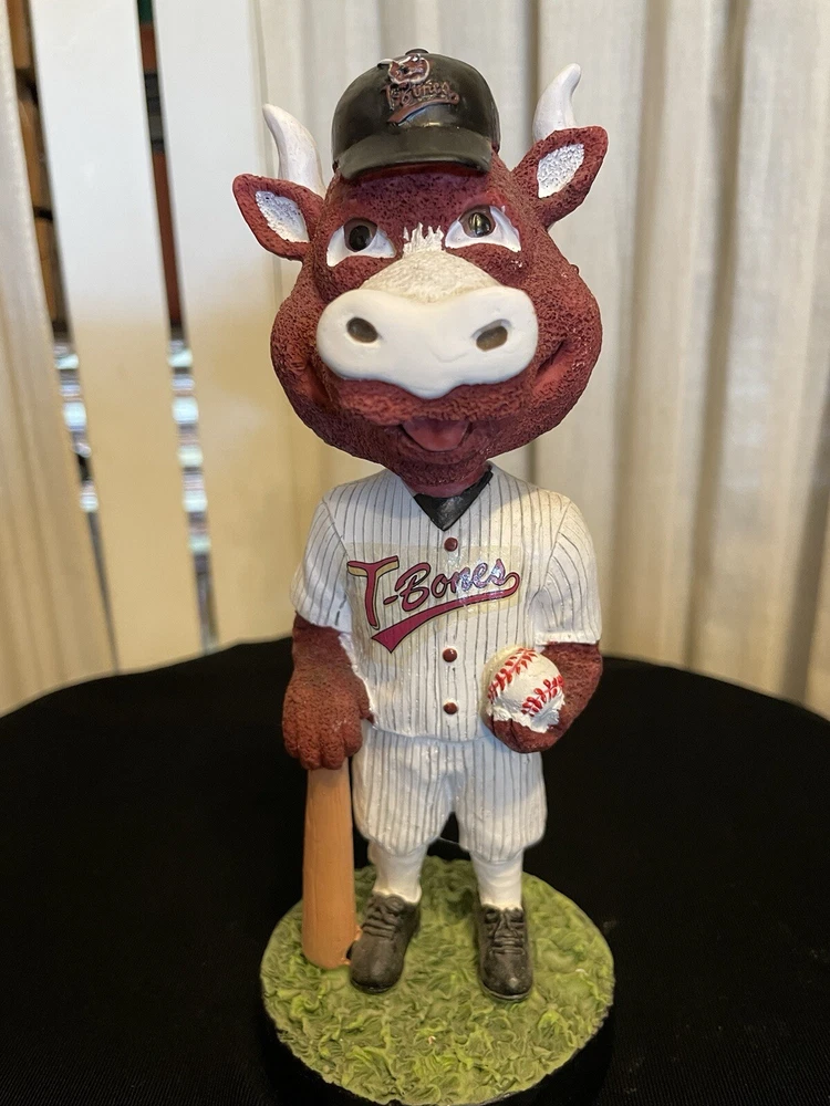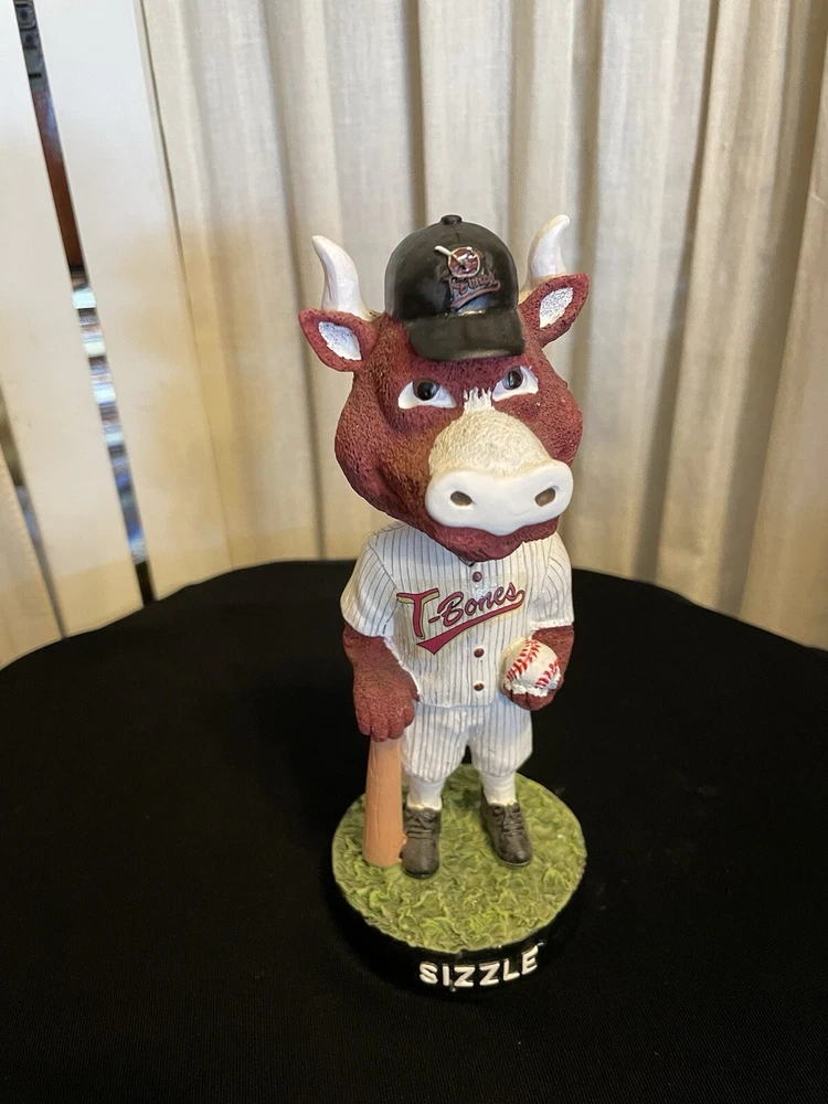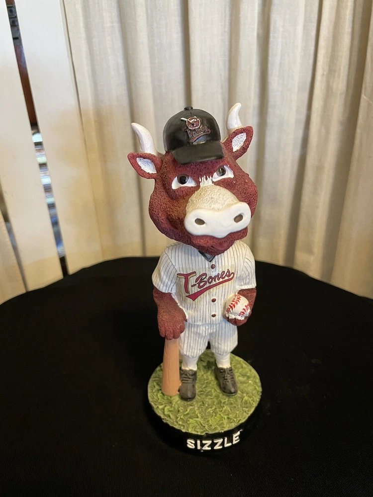 This vintage T-Bones sizzle mascot bobblehead is a must-have for any baseball fan's collection. Representing the Kansas City T-Bones, this bobblehead is a unique piece of sports memorabilia that any fan will be proud to display. With its vibrant colors and intricate details, this bobblehead is sure to be a conversation starter. Perfect for collectors and fans alike, this bobblehead is a great addition to any sports memorabilia collection. Whether you're a fan of the Kansas City T-Bones or just love vintage sports memorabilia, this piece is sure to impress. Don't miss out on the chance to own this one-of-a-kind bobblehead!