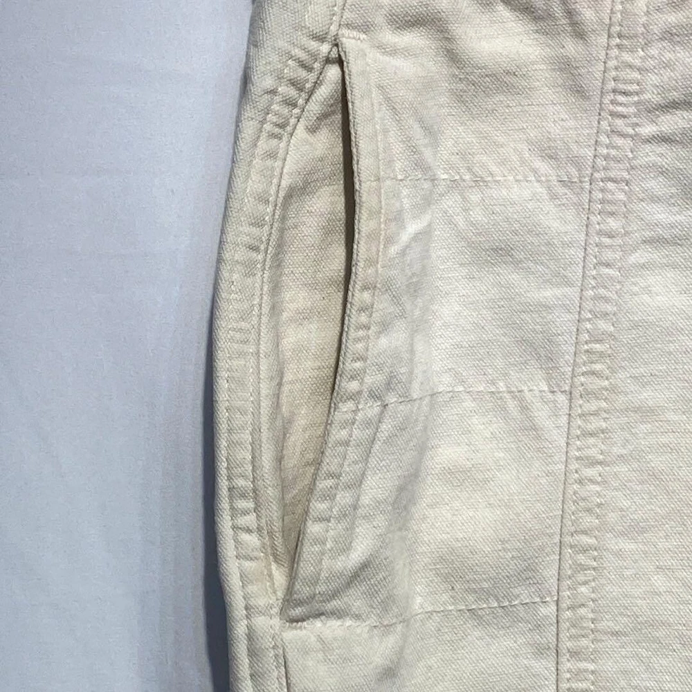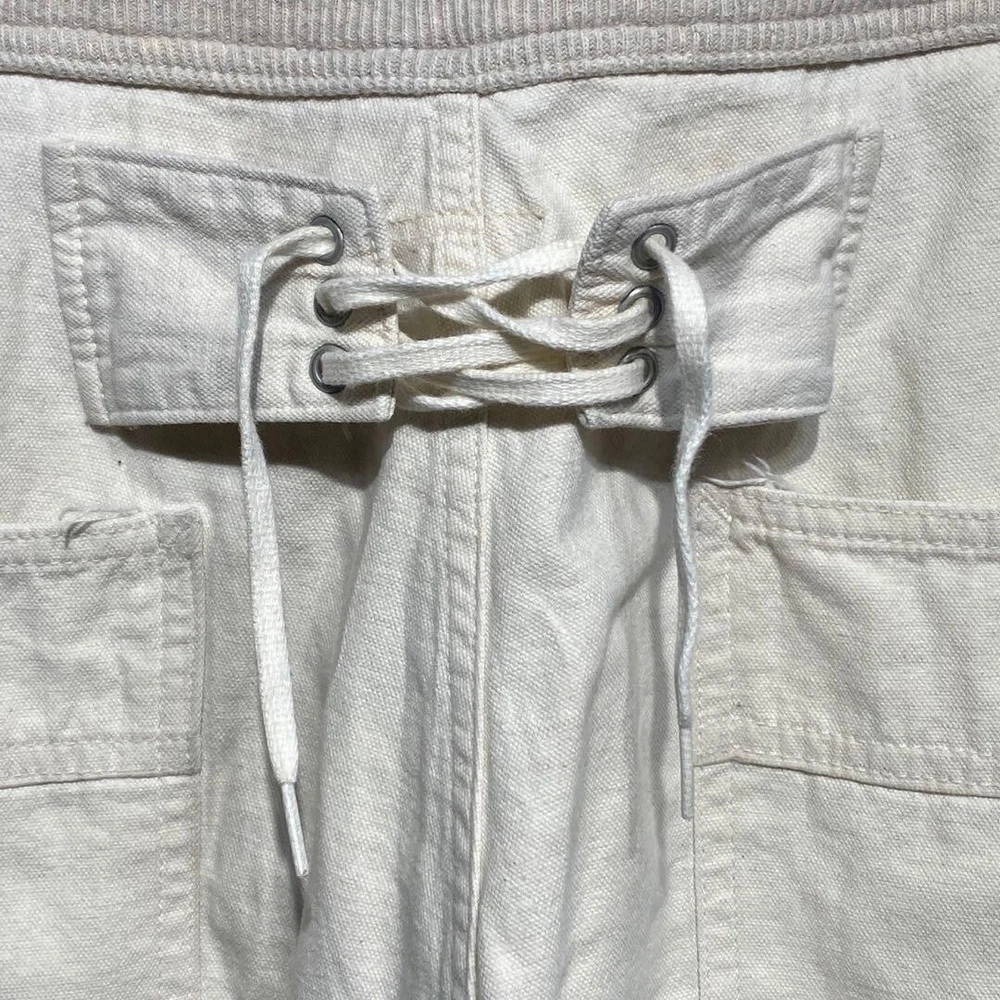 Features: Pockets UPC: Does not apply Model: NA Fit: Slim Vintage: No Garment Care: NA Size: 1 MPN: NA Pattern: Solid Type: Pants Color: White Theme: NA Product Line: NA Accents: NA Size Type: Regular Personalize: No Style: NA Occasion: Business, Casual, Travel Season: Fall, Spring, Summer Rise: 14.5 in Handmade: No Leg Style: NA Department: Men Brand: Kapital K Material: Cotton, Linen gtin13: Does not apply Fabric Type: NA Pocket Type: NA Closure: Button, Drawstring Inseam: 14.9 in Waist Size: 24.4 in