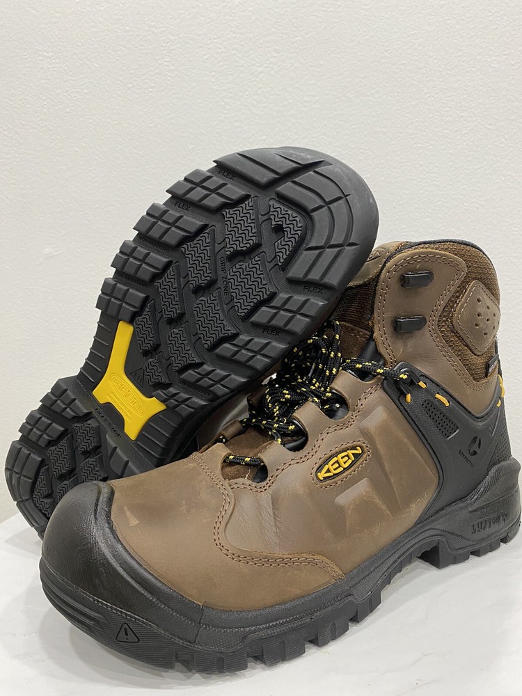 Step up your workwear game with these KEEN Dry Waterproof Utility Men's Boots. Featuring a waterproof leather upper and KEEN.DRY breathable membrane, these boots are perfect for any season. The oil and slip-resistant non-marking rubber outsole, TPU shank for midfoot support, and ASTM F1677-96 MARK II Non-Slip Testing Standards ensure safety and comfort all day long. Designed with locking metal hooks and lacing eyelets, these boots have a customizable fit for added support. The lining with hydrophobic/hydrophilic 2-zone comfort technology and removable, metatomical dual-density EVA footbed provide ultimate comfort and natural odor control with Cleansport NXT™. These boots are ASTM F2412-18 and F2413-18 M I/75 C/75 EH standard compliant, making them a reliable and durable option for any job. Condition of the item is New without box. Shipped asap by USPS Priority Mail.