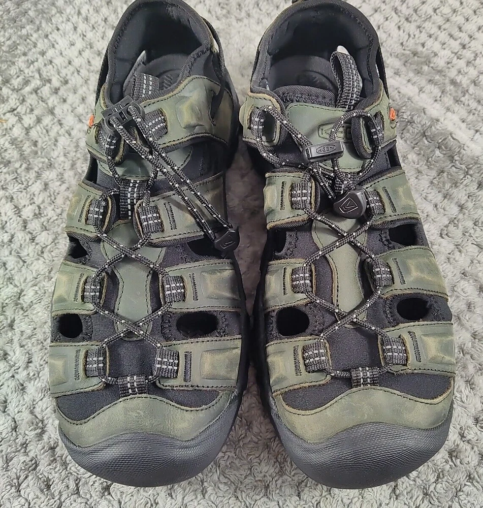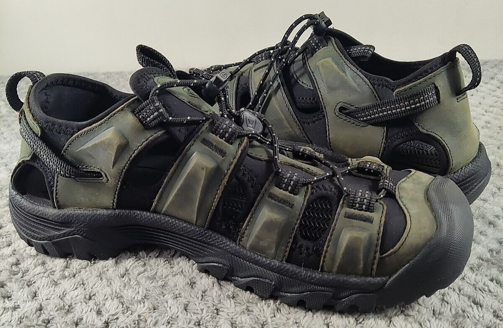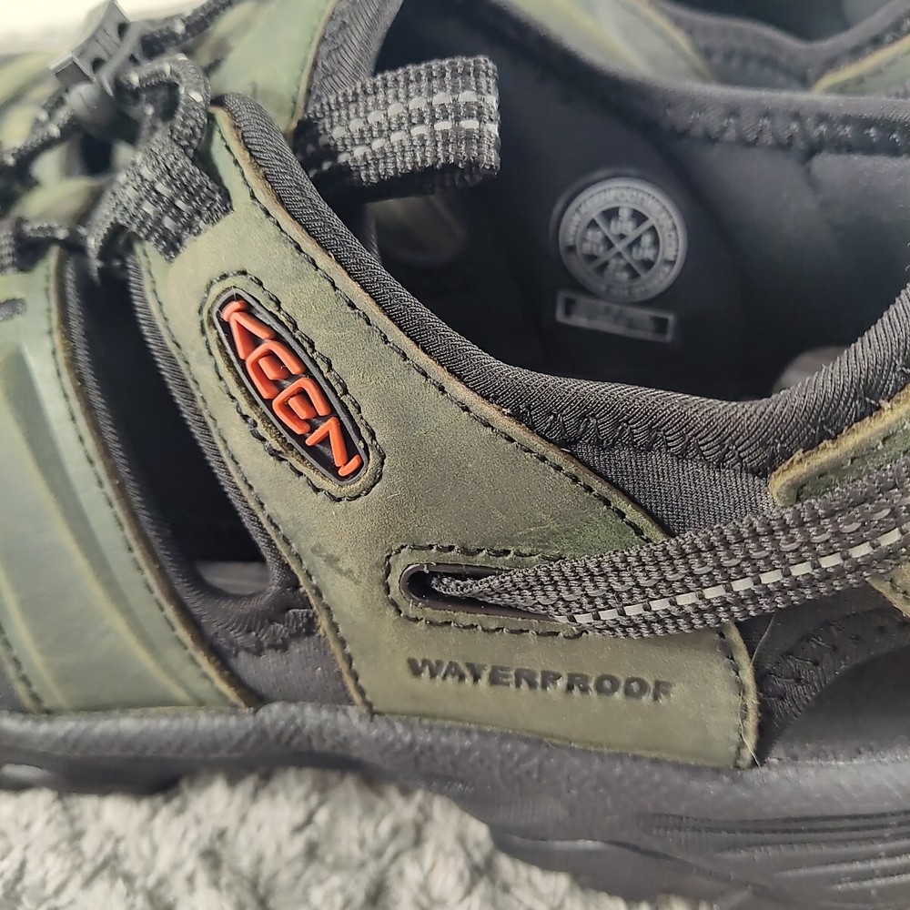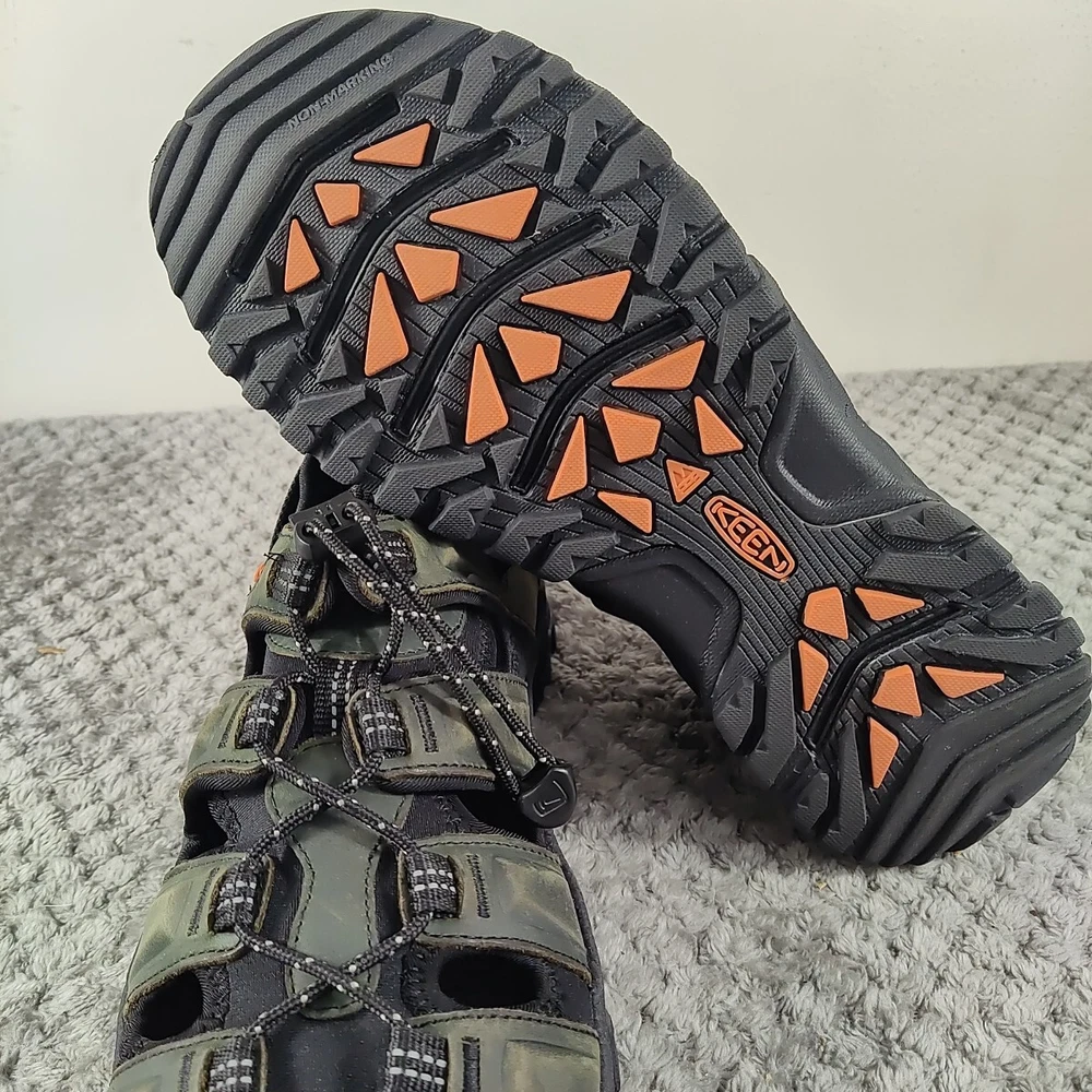 KEEN Targhee III Hiking Sandals Men's 9M - Gray/Black Explore every inch of the great outdoors in the KEEN® Targhee III Hiking Sandals for Men. Waterproof leather-strap uppers and quick-dry linings mean you can venture off trail with complete confidence. Plus, EVA midsoles and footbeds cushion and support feet over tough terrain. Built-in arch support for additional comfort. Non-marking KEEN.ALL-TERRAIN rubber outsoles with multidirectional lug patterns keep you surefooted as you blaze your own trail. The KEEN Targhee III Hiking Sandals for Men combine the performance of your favorite hikers with the warm-weather comfort of sandals. Imported. Manufacturer style #: 1022428. Waterproof leather-strap uppers with quick-dry linings EVA midsoles and footbeds cushion and support Built-in arch support for enhanced comfort Non-marking KEEN.ALL-TERRAIN rubber outsoles Multidirectional lug patterns for sure traction