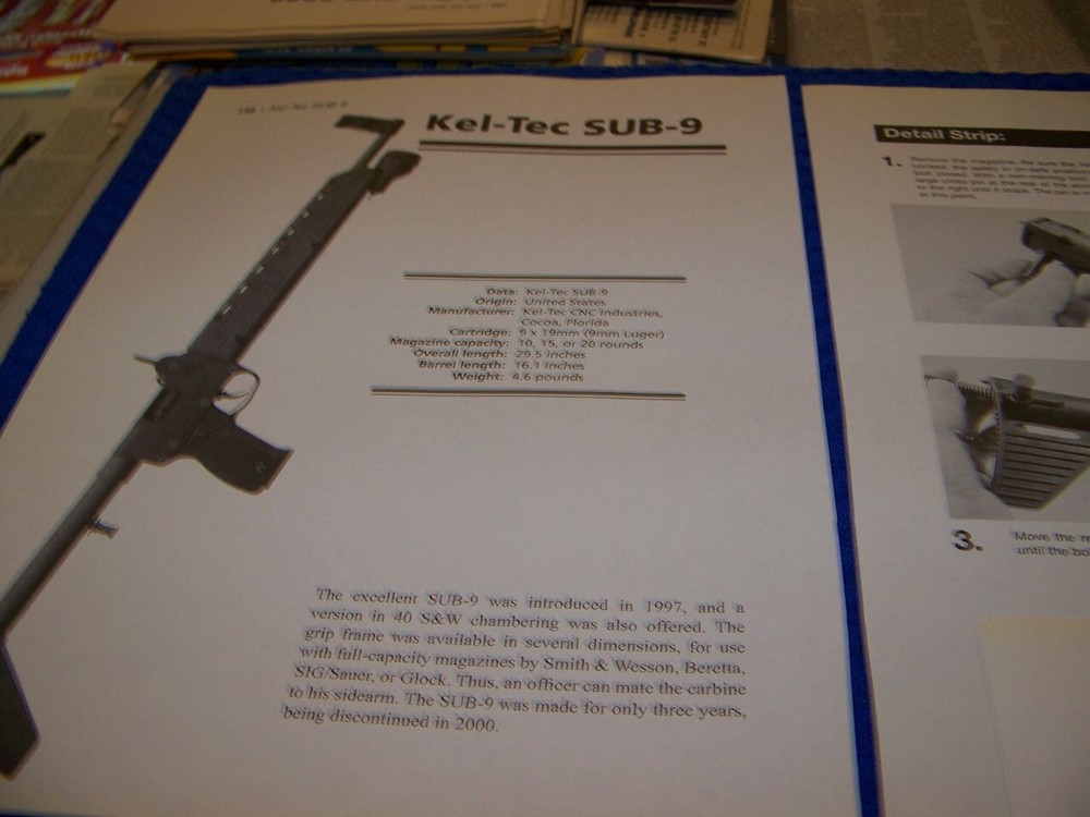 NOTE: THE REASSEMBLY TIPS ARE VERY VERY SHORT!...REASSEMBLY IS DONE IN REVERSE ORDER OF THE INSTRUCTIONS AND PHOTOS THESE ARE EXTREMLY RARE PROFILES OF ALL TYPES OF GUNS SUCH AS LISTED BELOW!.........DONT MISS YOU CHANCE TO AD THIS TO YOUR COLLECTION! THESE ORIGINAL PERIOD (1960'S/70'S/80'S/90'S ) PAPER ARTICLES WERE BOUGHT FROM A GUN COLLECTOR ESTATE SALE AND ARE SLEDOM SEEN!.......ALL IN AWESOME CONDITION FOR THEIR AGE! UP FOR SALE IS AN ORIGINAL PRINT 15-PAGE ARTICLE ON:.. KEL-TEC SUB-9 (9MM) (6-PAGES) & MARLIN MODEL 9 (9MM) (9-PAGES) Page/s size: APROX: 8 1/4 " X 10 1/2" AUTHOR/ARTIST: N/A YEAR: 2008 ORIGINAL PRINT SCALE: N/A ARTICLE FEATURES: HISTORY/DETAILS/PHOTO/TAKEDOWN INSTRUCTIONS WITH PHOTOS/ REASSEMBLY TIPS (SHORT) /SPECS & DATA CHART CONDITION: GREAT-LIGHT COLORING (NORMAL ). ** SOLD FOR 15-PAGES DRAWINGS/PROFILES ...ANY OTHER ARTICLE ON BACK OF DRAWINGS/ARTICLE ARE NOT REPRESENTED IN THIS AUCTION! *** (REMEMEBER THESE ARTICLES ARE EXTRMELY OLD AND RARE...SOME MAY HAVE SOME BORDER DISCOLORATION/SMALL EDGE CHIPS/PAGE DISCOLORATION)/BINDING CUTOUTS....SEE CONDITION AND NOTES LISTED ABOVE AS TO EACH ARTICLE! **THESE ARE AIRCRAFT ARTICLES THAT HAVE BEEN EXTRACTED FROM VINTAGE MAGAZINES/ECT... AND ARE INDIVIDUAL PAGES OF EACH SUBJECT AND SOLD AS COMPLETE ARTICLES ON EACH SAID AIRCRAFT AS LISTED ABOVE! NOT SOLD AS A COMPLETE MAGAZINE or BOOKLET!!! **all articles are shipped flat on cardboard flat and mail flat in manila envelope to INSURE condition! ** I DO OFFER COMBINED SHIPPING ON MULTIPLE ITEMS PURCHASED