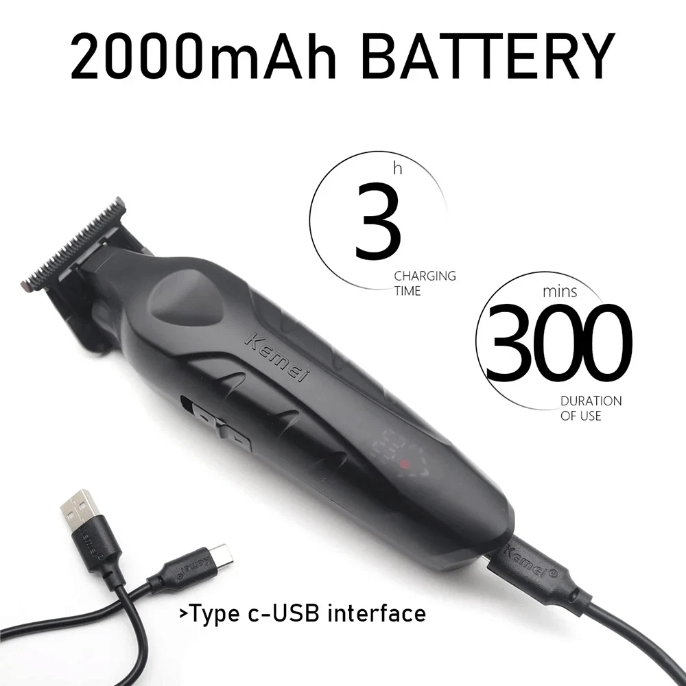 Description Model: KM-2269 Power: 5W Battery capacity: 2000mAh Charging time: 3 hours Usage time: 300 minutes Charging type: USB charging - Professional trimmer hair finishing machine designed for men, the Kemei KM-2269 features a high-performance T-Blade providing precise and smooth cutting. - Equipped with a powerful 7500RPM motor for fast and efficient trimming, ensuring a clean and sharp look in no time. - The digital LCD Display allows for easy monitoring of battery life and speed settings, enhancing user convenience and control. - With a USB Interface for quick and convenient charging, the Kemei KM-2269 ensures a reliable power source whenever needed. - Crafted with a durable and sharp ceramic blade, along with zero gap adjustment for maximum precision and cutting efficiency, making it the ideal choice for professional grooming needs. Package list 1 x machine 4 x limit combs 1 x brush 1 x charge cable Note: Due to the limitation of air transport, this product does not contain oil,Please understand. If you have any questions, please feel free to contact us, please do not leave any negative feedback, we will deal with it as soon as possible, thank you