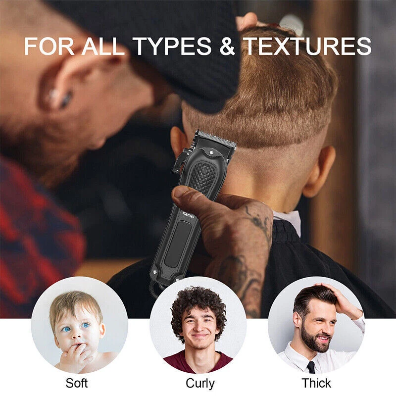 Kemei Professional Hair Clippers Cordless Trimmer Beard Cutting Machine Barber Item Description 2025 NEW Kemei Hair Clippers Trimmer Kit Men Professional Cutting Machine Barber Salon US FEATURES: COMPLETE HOME HAIR GROOMING KIT - Personal care hair trimmer with four attachment clipping comb,cleaning brush and charging adapter in a packing box to keep it all organized. It has everything you need for a quality haircut and a great styling kit for men for a hassle-free grooming experience at home or on the go CORDLESS HAIR TRIMMER with LED DISPLAY - Features a smart LED display, which clearly shows battery power in percent, charge indicator and lubrication reminders that helps get the job done even quicker. You can control the usage time according to remaining battery life. PRECISE LENGTH CONTROL - The product is equipped with a 0.5mm-2.0mm stepless adjustment device and 4 standard length limit combs respectively 3/6/9/12mm.SELF-SHARP STAINLESS STEEL BLADE to cut any hair type neatly and effectively without snagging, pulling or pinching RECHARGEABLE LONG BATTERY LIFE - Easy to use handy shaving sets that provides up to 3 hours of running time after 3 hours of charging. 100 - 240 worldwide voltage making an ideal choice for travel and business trips. It comes equipped with a long-lasting 2000mAh lithium battery that can be charged anytime, anywhere. ERGONOMIC DESIGN - Compact and lightweight, this wireless hair clipper that measures 7.28x 2.36 x 1.96 inches boasts an ergonomic design for easy maneuvering and optimal control that helps you to avoid hand, wrist, and arm fatigue during a busy day SPECIFICATION: Input Voltage: AC 100-240V 50/60Hz Power: 5W Charging time: 3hours, Useing time: 120min Color:Golden PACKAGE LIST: 1*Machine 1*Adapter 4/6/10 Auxiliary comb 1*Hair brush 1*comb 1*Manual 1* Lubrication oil Warm Tips Please apply oil to lubricate the head to improve the hair clippers' efficiency and maintain its performance. The hair clipper set is driven by motor power so working sounds below 60 decibels are normal, and do not worry about safety. The hair trimmer will become hot after continuous use for more than ten minutes, but it does not exceed 122 degrees Fahrenheit and is safe. Detail Images Shipment All item will be carefully packaged very well with safe material and shipped to US States. Items will be sent in 1 working days,usually shipped by USPS Priority Mail. It will take about 3-5 days to US addresses. If you would like to ship by other shipment methods,please contact us.( shipping cost will be combined for multiple items you purchase at a time.) Payment Only PayPal is acceptable.It is a safe and easy payment method for buyers. Please pay in 48 hours after you win the item(s).If payment cannot be made in five days,your order(s) will be claimed as unpaid case and the item will be relisted. Return & Refund Customer satisfaction is our first priority. 30-days return is available after delivery. However, return shipping and insurance cost will be on buyers. Please email us before returning. Delivery date will be different according to UPS or USPS tracking system, so please inspect your item immediately upon arrival. Money will be return to you after the return item is sent back. We can not refund to you, if your return item is broken or damaged. Please ensure its safety. Feedback Your feedback is very important to us. If you can't leave us a "5-Star" rating and a positive feedback, please contact us without hesitation before leaving feedback. We are eager to work with our customers. We believe in communication. Give us a call or send us an email, we will make things right for our buyers. Positive feedback for our buyers will be left automatically by eBay Seller Manager Pro.