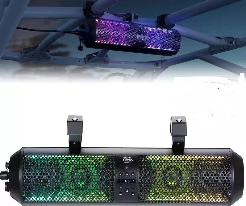 Condition New Sync Your Lights to Music The RGB multi-color lights on the ₭EMIMOTO Golf Cart sound bar flash in sync with the beat of the music. You can choose from various multi-color illumination options using the wireless remote control or the onboard button control. Waterproof & Dustproof The ₭EMIMOTO SXS Sound Bar meets the IP65 Rating International Standard, ensuring complete protection against dust, oil, and other non-corrosive materials. It also provides a good level of protection against water. Powerful Loud and Clear Sound Equipped with two 4'' full-range speakers and two 1'' soft dome tweeters, the ₭EMIMOTO sound bar is powered by a high-performance 400W to provide you a loud music even during riding. Various Connectivity Options The Kemimoto utv soundbars with lights offer multiple ways to connect to your Smartphone or MP3 Player effortlessly. You can establish a wireless connection through its built-in Bluetooth feature, utilize the 3.5mm aux input, or utilize the USB charging port for playback. RGB SXS speakers are compatible with both iOS and Android systems, ensuring seamless connectivity. Additionally, if you prefer to enjoy crystal-clear and amplified music while riding, you can connect your headphones to the soundbar's 3.5mm aux input. Round Design with Tough Construction ₭EMIMOTO always spares no effort in developing UTV parts including the utv sound bar with a round shape and aluminum alloy, which makes you outstanding from the crowd, more importantly, it won't hurt you much if you hit the soundbar occasionally compared with square one. What You Get With the package of 18 Inch kemimoto Bluetooth RGB speakers, you'll receive everything you need for a hassle-free installation. Package includes adjustable mounting brackets, a 18" 4-speaker loud soundbar, AUX input, USB jack, wireless remote control, power extension adapter, cigarette lighter, user manual, and installation tools.