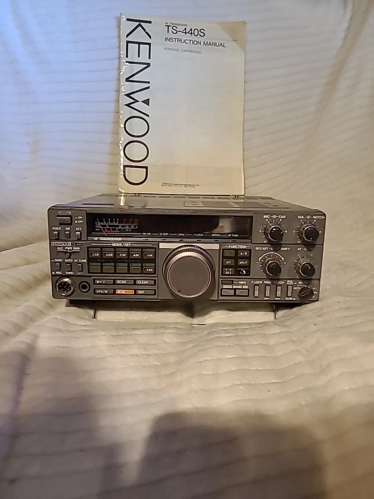 Price reduced for quick sale and due to two function buttons are worn cosmetically. SEE CLOSE UP PICTURE WILL NOT EFFECT THE UNITS FUNCTIONALITY ASIDE FROM THE TWO BUTTONS THE UNIT IS IN VERY GOOD CONDITION This Kenwood TS-440S HF Transceiver comes with a manual and is perfect for any amateur radio enthusiast. With a gray color and the brand name Kenwood, you can be assured of the quality of this product. It is ideal for radio communication and falls under the categories of Consumer Electronics and Ham Radio Transceivers. The manufacturer warranty may have expired, but the product is still guaranteed to be reliable. Get your hands on this amazing piece of equipment and start communicating with ease.