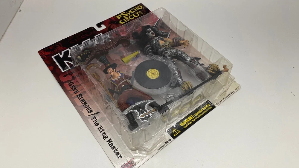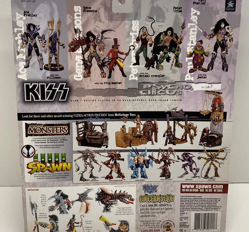 This KISS Psycho Circus action figure of The Ringmaster is a must-have for any fan of the band or collector of vintage toys. Released in 1998 by McFarlane Toys, this figure is part of the Psycho Circus series and comes in its original packaging from Spencer Gifts. The figure stands at [insert height] inches tall and features intricate details, from the Ringmaster's top hat and cane to his signature makeup. Along with the figure, the package includes a [insert included item], making it a complete set for any collector. Add this rare find to your collection today!
