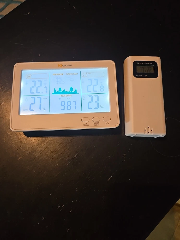 The KJ Cooswl Thermometer is a digital programmable thermostat powered by batteries, designed for indoor and outdoor use. It includes a wireless sensor for monitoring temperatures both inside and outside of a home or other space. The thermostat is white in color and does not have cool stages, making it a simple and practical option for controlling temperature settings efficiently. Its programmable feature allows users to customize temperature settings based on their preferences and schedules.