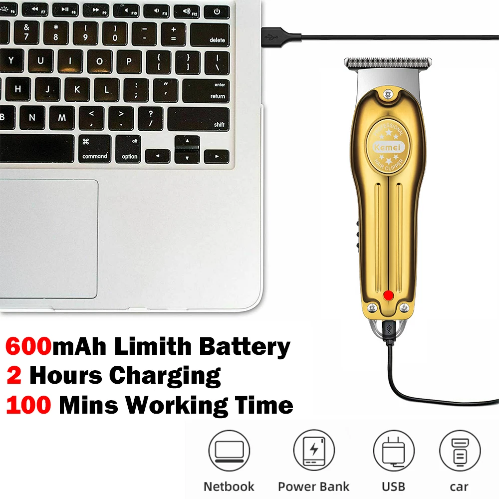 Item Weight: 1 lb Head Type: T-Blade Power Source: Electric Color: Gold Type: Trimmer Motor Type: Rotary Features: 360° Rotating Head, Adjustable Speed, All-In-One, Cleaning System, Comes With Storage Case, Cordless, Dual Voltage, Folding Blade, Low Battery Indicator, Non-Slip Grip, Quick Charging Time, Rechargeable, Self-Sharpening, Swivel Cord, Travel Size, Washable, Waterproof, Wet/Dry Number of Heads: 1 Body Area: Back, Body, Chest, Ear, Eyebrow, Face, Neck, Nose, Pubic, Upper Lip Model: KM-679 Cutting Lengths: 0.0 mm, 1mm, 2mm, 3mm Department: Men Brand: Kemei Item Length: 2 in Country/Region of Manufacture: China