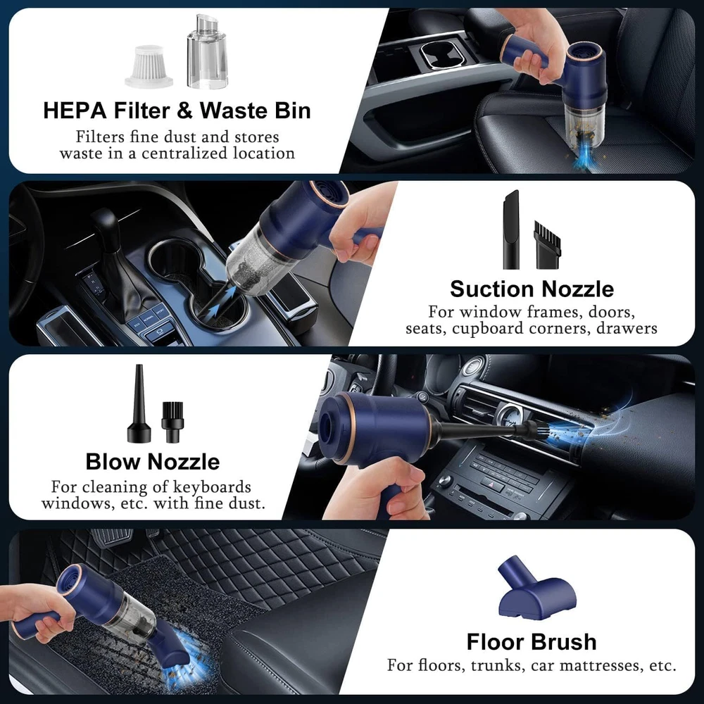 KMM Handheld Car Vacuum Cleaner, 9000Pa Cleaner and Air Duster, Blue Product Details Brand: KMM Special Feature: Portable, High Power, Cordless, Rechargeable, Washable Filter Filter Type: HEPA Filter Included Components: Brush Is Cordless?: Yes Capacity: 312.5 Pounds Wattage: 120 watts Runtime: 3 hours Charging Time: 2.5 Hours Recommended Uses For Product: The vacuum cleaner can thoroughly clean computer keyboards, cameras, air conditioners, sofas, windows, pets, plants, and more. You can use the vacuum cleaner as you like according to your needs, making cleaning easier. Form Factor: Handheld Color: Blue Model Name: LT-117C Product Dimensions: 7.68"L x 6.3"W x 2.68"H Battery Description: Lithium-Ion Noise Level: 60 dB Amperage: 4 Amps Manufacturer: KMM Number of Items: 1 Controller Type: Push Button Motor Horsepower: 0.16 horsepower Control Method: Touch Style: Modern Connectivity Technology: USB Portable: Yes Number of Handles: 1 Number of Power Levels: 2 Series Number: 11 Indoor/Outdoor Usage: Indoor Item Weight: 12.3 ounces Country of Origin: China Item model number: LT-117C Batteries: 1 Lithium Ion batteries required. (included) Specific instructions for use: Blow nozzle for cleaning of keyboards, windows, etc. with fine dust. Fabric Type: 95658-chn-1 Perfume: adult sex toys clitoral vibrator Batteries required: Yes Battery type: Lithium-Ion Surface RecommendationPower Source: Window CarBattery Powered VoltageItem Weight: 1212.3 Ounces 95658-chn-1 【Rechargeable Battery and Fast Charging】The electric vacuum cleaner has a built-in 4000mAh battery with a fast charging port. It can be easily charged using a car charger, mobile power, laptop, rechargeable battery, and other methods. It takes only 3 hours to charge. This reusable vacuum cleaner is a perfect replacement for compressed air canisters and is environmentally friendly and energy-efficient. It also saves money and time ⚡【Powerful Air Duster and Vacuum Cleaner 2 in 1】Our vacuum cleaner has two functions: it can suck or blow. You can use it to easily blow away dirt, debris, dust, and other particles from the surface of your items, as well as to suck out the tiny stubborn dirt hidden in keyboards, corners, and crevices. The powerful function of the vacuum cleaner collector makes the dust in all places have nowhere to hide and makes all of your items look new 【Effortless Maintenance】With just one-click dismantling, you can easily dump garbage and clean the vacuum cleaner. The Hepa filter can be washed and reused, ensuring efficient suction power while keeping dust and dirt outside to prevent blockage ⭐【Simple Design】The vacuum cleaner has a stylish design and weighs only 0.72 lbs, making it very compact and lightweight. It is comfortable to hold and saves space, making it easy to carry and store. In addition, it is designed with LED light, so you can easily clean in dark places or at night. The user-friendly design brings great convenience to your cleaning work 【Wide Application】The cordless vacuum cleaner comes with many different detachable brush head nozzle accessories for cleaning various scenes. For example, it can thoroughly clean computer keyboards, cameras, air conditioners, sofas, windows, pets, plants, and more. You can use the vacuum cleaner as you like according to your needs, making cleaning easier