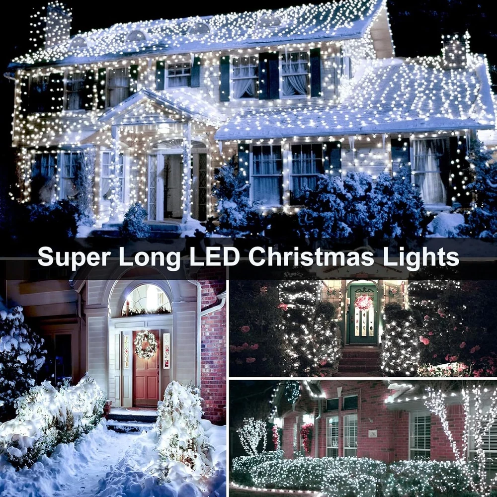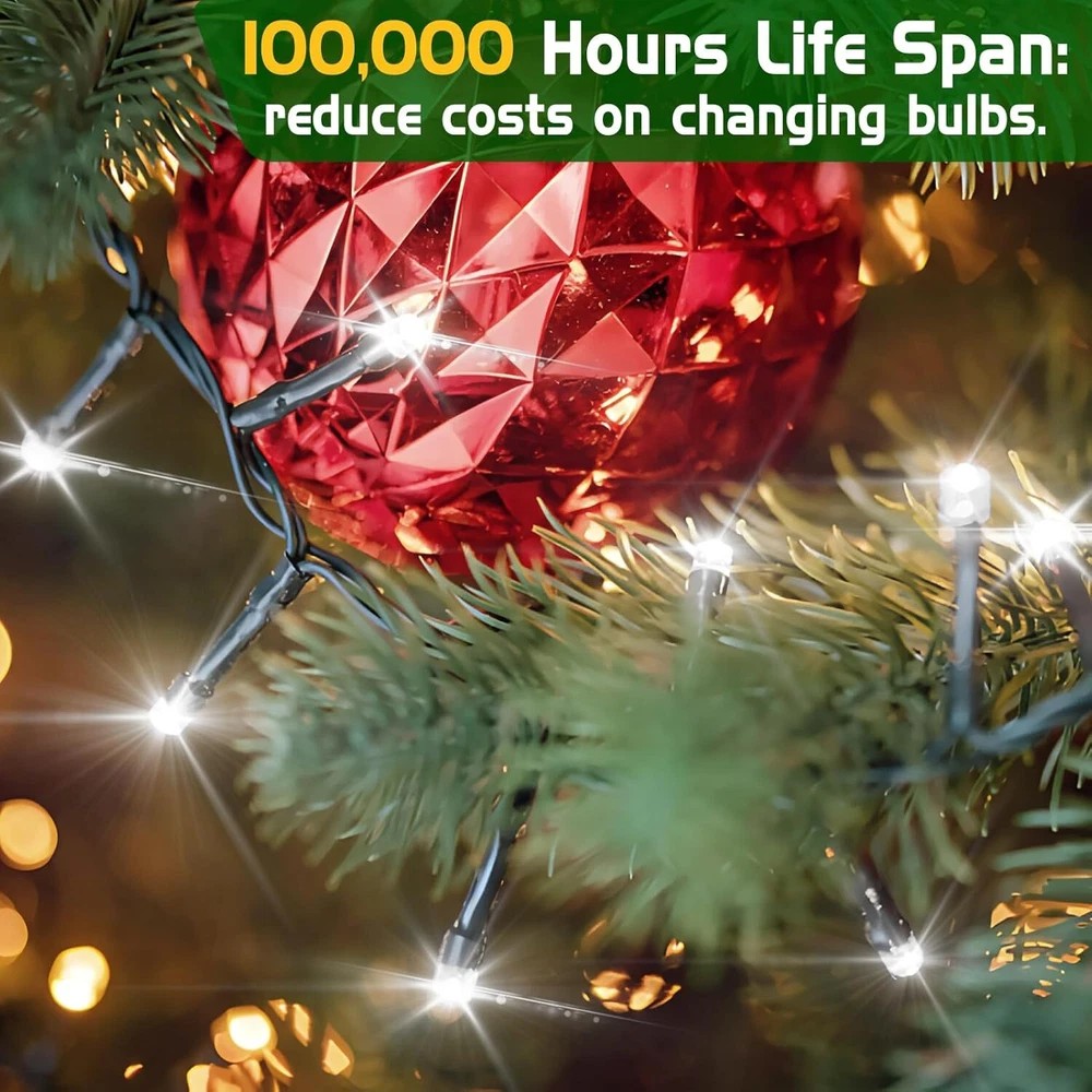 403FT Super Long and 1000LEDs Super Bright: The Green Wire Christmas lights length is 403ft with 1000LEDs beads, and 9.84ft plug cord, which can be enough to wrap around and decorate a 15ft Christmas tree, no need to extend, moreover green wire will blend well with the tree. Upgraded higher brightness LED bulbs make each LED beads shine 360 degrees but non-dazzling, to create a cozy, romantic and festive atmosphere for Christmas, Party, Wedding. As a holiday decoration, KNONEW Christmas string lights is really Excellent Value. Smart Christmas String Lights: Including 1 steady on +7 Variable Lighting Modes(Combination/In Waves/Sequential/Slo-Glo/Chasing/Slow Fade/Flash/Steady On). Stay away from single lighting mode! Whether you are hosting a lively gathering or enjoying a quiet evening under the stars, variable Lighting Modes allows you to set the perfect mood for any occasion. Safer and More Efficient: Christmas LED Lights is powered by 29V low voltage output Plug with UL certified, and Low-temp LED bulbs ensure no overheat after long time using. Very safety for kids and pets even can hold it or hang it on their bodies. The LED beads not only do they consume a fraction of the energy , but they also boast a longer lifespan, saving your both energy and money in the long run. It's a win-win situation that combines eco-friendliness with cost-effectiveness. Indoor Outdoor Used: Outdoor lights have IP44 waterproof rated, you can trust they hold up against stormy days, and provide reliable performance season after season. Kindly note the plug needs to be protected from water. Perfect for indoor and outdoor use, hang it into your yard,garden,patio,bushes,doorways,and bedroom,classroom,curtain,ceiling. Making you feel relaxed after exhausting work all day,and enjoy the peaceful moments at night. 4 Adjustable Brightness Levels and 3 Timer Function: Built-in timing and memory chip, no longer have to manually turn it on and off every day, and it will save your last mode setting or timer setting without reset. Saving your time. 100%-75%-50%-25% 4 level brightness adjustable, you can choose the brightness that makes you feel most comfortable. Super easy to install, plug-in and play, then hang it or place it anywhere you need. It`s a great gift for your family and friends.