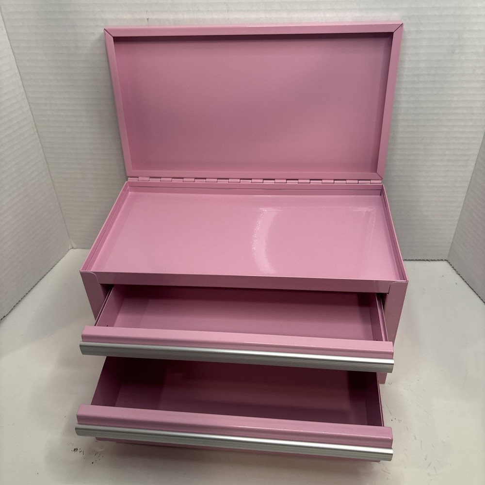 This KOBALT Mini Steel Tool Box is the perfect solution for organizing your tools and keeping them easily accessible. With two magnetic drawers and a lift-up lid, you can easily store and retrieve your small tools without having to search through a cluttered mess. The glossy pink finish adds a nice touch. This tool box is brand new lost the box on Christmas never been used has been sitting in a closet.