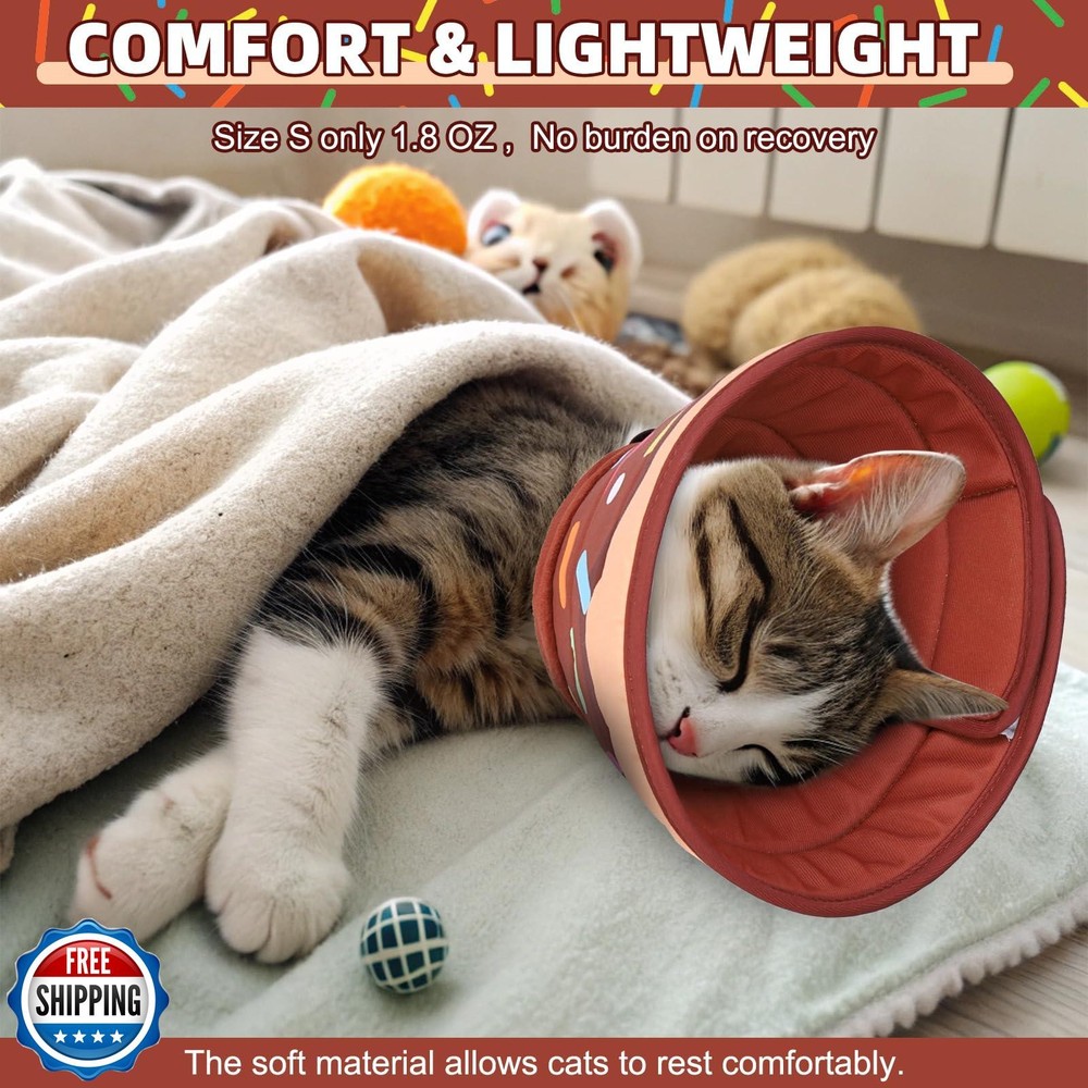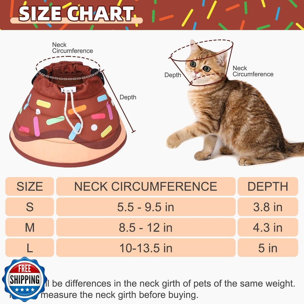KOOLTAIL Cat Cone Collar Soft, Adjustable Cat Cones to Stop Licking, Foldable Donut Water Resistant Pet Recovery Neck E Collars After Surgery, Kitten Elizabethan Collar for Small to Large Cats,Brown L Features ADJUSTABLE SIZE: We have specially designed 3 sizes, the neck circumference of size S is 5.5-9.5 inches, M is 8.5-12 inches and L is 10-13.5 inches, suitable for the vast majority of cats to use. The adjustable drawstring design allows for easy reduction and enlargement of the collar, making it less likely to fall off. The design of magic tape makes it more convenient to put on and take off. FOLDABLE EDGE DESIGN: We all know how pets hate bulky cones, dogs and cats can keep tripping over them, unable to move around. This cat collar won't let this happen, and the folding edge design won't block the cat's line of sight like the traditional Elizabeth collar. It will not hinder your cat from eating and playing. WATER RESISTAND & COMFORTABLE: Our recovery collars are made of waterproof fabric, which is lightweight and easy to clean. Simply use mild soap to clean and dry. Dust and water droplets on the surface can also be removed by wiping. Built-in sponge filling, soft and comfortable. Don't worry about our collar hurting your pet. WEARABLE ON BOTH SIDES: Designed the cute donut pattern, with one side featuring a pattern design and the other side featuring a solid color design, both sides can be worn. You can choose according to your needs. You can place the brown donut pattern on the outside or on the inside. Make your pet more cute and special! PROTECTIVE CAT CONE TO PREVENT LICKING: This cat recovery collar can effectively prevent your cute cat from biting, or licking wounds or surgical areas. It can serve as a great protective barrier to help your cat recover quickly. The soft collar after cat surgery can prevent your pet from biting and licking wounds after surgery or injury. It can also provide good protection in bathing, nail trimming, and other beauty occasions. Shipping Free & Fast Shipping: We offer free shipping to most of the USA with a normal delivery time of 3-7 days. However, due to the current situation, additional delivery time (up to 3 weeks) may be required for some items. Alternative Carriers: We may use alternative carriers (e.g., USPS, FedEx, UPS) to ensure your package arrives safely and on time. Due to the use of multiple carriers, we are unable to provide a tracking number automatically. Handling Time: Orders are processed and shipped within 1-2 business days of receiving cleared payment. Shipping Restrictions: Shipping to Alaska, Hawaii, Puerto Rico, Guam, and other US territories may incur shipping charges or delivery restrictions. Please contact us before ordering, or your order can be refunded/cancelled. State Restrictions: Certain items may not be shipped to California due to state regulations. Contact for Tracking Updates: If you require tracking updates or have any concerns about the delivery of your order, please feel free to contact us, and we will be happy to assist you. Return Policy 30-Day Hassle-Free Returns: If you are not completely satisfied with your purchase, you can return the item for free within 30 days of receiving it for a full refund or exchange. Easy Return Process: Contact us, and we will provide you with a prepaid return shipping label and detailed instructions. No Restocking Fee: There are no restocking fees for returns. However, the buyer is responsible for return shipping costs if the return is not due to a seller"s error. Refund Processing: Refunds will be processed within 1 business day of receiving the returned item in its original condition. Feedback Your feedback is extremely important to us. We strive to provide the best products and customer service possible. If you are satisfied with your purchase, please take a moment to leave us a positive review. If you have any concerns or issues with your order, please contact us before leaving negative feedback. We are committed to resolving any problems and ensuring your satisfaction. Contact Us If you have any questions or concerns, please feel free to reach out to our customer support team. You can contact us through the eBay messaging system. We are available Monday to Friday, 9:00 am to 5:00 pm EST, and we will do our best to respond to your inquiry within 24 hours. Thank you for supporting our small family business!