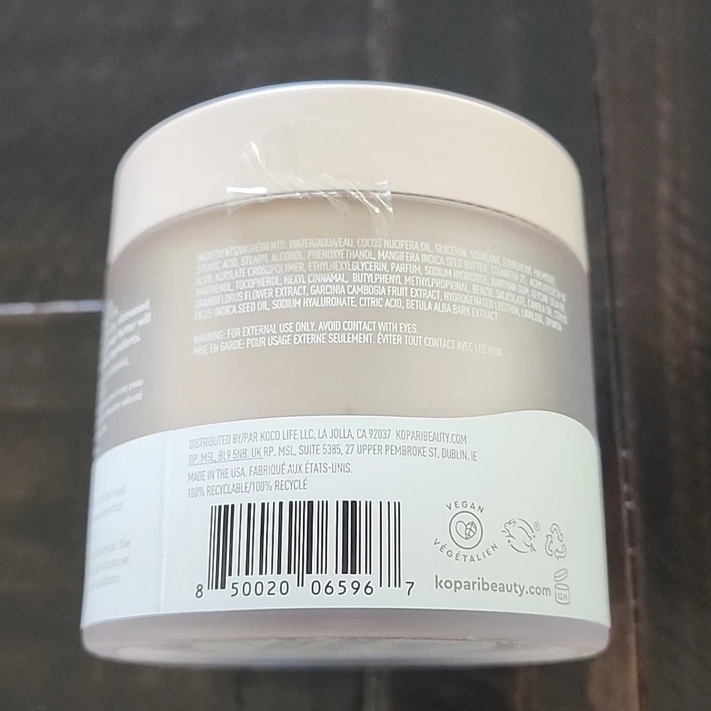 NEW & SEALED KOPARI ultra restore body butter with hyaluronic acid. Full-size. Clean beauty. OG coconut scent. Moisturizer. "Restore dry skin instantly and overtime with this luxurious, fast-absorbing body moisturizer clinically proven to immediately double skin's moisture." Kopari Beauty. Skin. Skincare. Moisturizer. Cruelty free. Vegan. Natural. Organic. Face. Body. Hyaluronic Acid. Coconut. Hydrate. Moisturize. Spa. Size: 7.7 fl. oz. Scent: OG coconut Condition: NEW & SEALED ✔ NEXT DAY SHIPPING ✔ NON-SMOKING ✔ NO TRADING 0098 - 5 / 0 / 15 oz