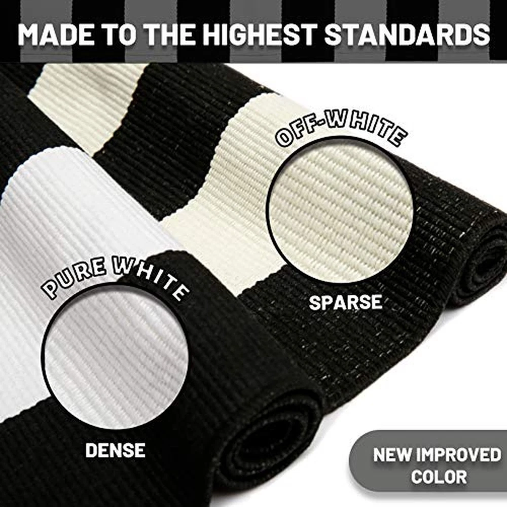 KOZYFLY Black and White Area Rug 27.5x43 Inches Striped Front Door Rug Cotton Washable Indoor Outdoor Rug Doormats Outdoor Small Striped Rugs for Kitchen Entryway Patio Front Porch Decor Product Details Size: 2'4" x 3'7" (Rectangular) Color: Black and White Brand: KOZYFLY MPN: Striped Rug UPC: Does not apply EAN: Does not apply Brand: KOZYFLY Size: 2'4" x 3'7" (Rectangular) Material: Polyester, Cotton Weave Type: Hand Made Pile Height: Low Pile Brand: KOZYFLY Size: 2'4" x 3'7" (Rectangular) Material: Polyester, Cotton Weave Type: Hand Made Pile Height: Low Pile Construction Type: Braided Back Material Type: Cotton+Polyester Color: Black and White Indoor/Outdoor Usage: Outdoor Theme: Farmhouse,Classic Is Stain Resistant: Yes Product Care Instructions: Machine Wash, Ironing at low temperature Pattern: Striped Shape: Rectangular Special Feature: Fade Resistant, Low Pile, Hand-woven, Foldable, Stain Resistant, Washable Room Type: Entryway, Balcony, Bathroom, Small Foyer, In Front of Kitchen Sink Product Dimensions: 43"L x 28"W Rug Form Type: Doormat Style: Farmhouse Occasion: Everyday Decoration, Gatherings, Holiday Decoration, Pet Area, Entryway Welcome Min. Required Door Width: 100 Centimeters Number of Pieces: 1 Item Thickness: 0.13 Inches Water Resistance Level: Water Resistant Is Autographed: No Age Range (Description): Adult Item Weight: 1.98 pounds Manufacturer: KOZYFLY Item model number: Striped Rug Date First Available: August 22, 2020 Durable Cotton Blend: KOZYFLY front porch rug, crafted from a cotton polyester blend, features a 0.13 inch low pile that's 20% denser than typical rugs. Hand woven, non loosening, and non fading, this striped rug stays bright and durable for long lasting use Easy to Clean: Just vacuum or shake our area rug to keep it clean. Machine wash the outdoor entry rug on the delicate washing cycle. Air dry to protect and extend the life of your black and white porch rug. NO BLEACH Combined with Welcome Doormat: KOZYFLY front door rug is larger and thicker than typical 2x3 ft mats, measuring 27.5" x 43". It pairs great with an 18" x 30" welcome mat, creating a layered welcome matt for front door of farmhouse decor Indoor Outdoor Rug: Suitable for both indoor and outdoor spaces. The black and white rug is resistant to sunlight, keeping its vibrant colors intact. Ideal for entryways, bedrooms, patios, kitchens, and more, adding style to any area Outdoor Care Tips: For outdoor use, please take care during wet weather. In case of rain, we recommend promptly cleaning and drying the rug to maintain its quality, extending its lifespan for your enjoyment Non-Slip Reminder: Please note that this rug does not have a dedicated non-slip backing. For better grip and safety, we recommend using non-slip pads or adhesive grips Versatile Design: The black and white striped rug suits farmhouse to modern styles. Ideal for gatherings, welcoming guests, or family dinners. Great for holiday decor, seasonal updates, or daily use, adding warmth and style to any space