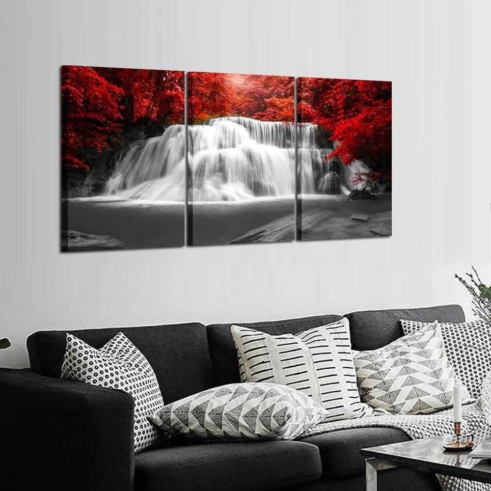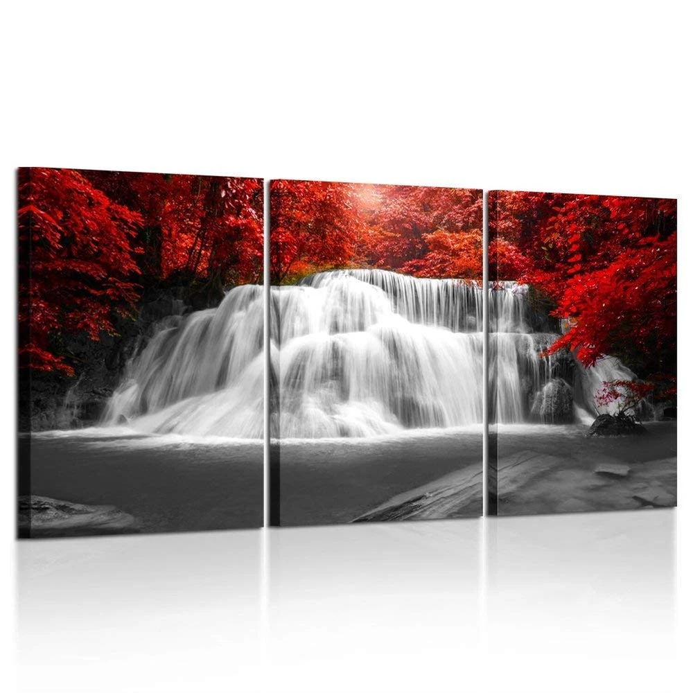 KREATIVE ARTS Black White and Red Canvas Wall Art 3 Pieces Red Woods Waterfall Canvas Print Landscape Paintings Framed Picture for Office and Home Décor Ready to Hang 16x24inchx3pcs Product Details Product Dimensions: 3.45 x 16.5 x 0.2 inches Item Weight: 3.5 pounds Manufacturer: Creative Arts Inc Item model number: 8681 Is Discontinued By Manufacturer: No Date First Available: May 21, 2015 High Quality Glossy Canvas with long lasting durability Printed at high resolution using the latest state of the art colour technology ensures sharp & vivid images every time Professional artwork is used for a sharp hi-resolution image Size:16''x24''x3panel (Total size of 3 pieces if placed together without spaces is 48''x24'') The Canvas has been expertly stretched (gallery wrapped)over 1'' wood frames which come ready to hang with hooks We inspect the artwork in every step of the finishing process, and then carefully pack your artwork to make sure it reaches you in the finest condition