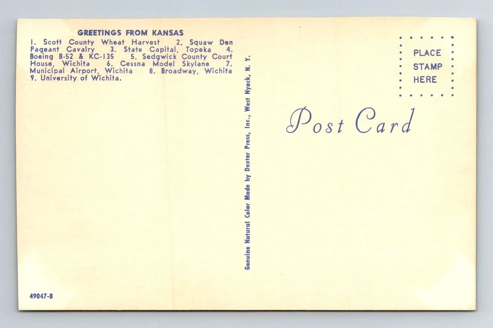 City: Kansas Subject: Cities & Towns Theme: Cities & Towns Postage Condition: See Image Country: USA Unit of Sale: Single Unit Original/Licensed Reprint: Original Region: Kansas Era: Chrome Type: Printed (Lithograph) Country/Region of Manufacture: Unknown