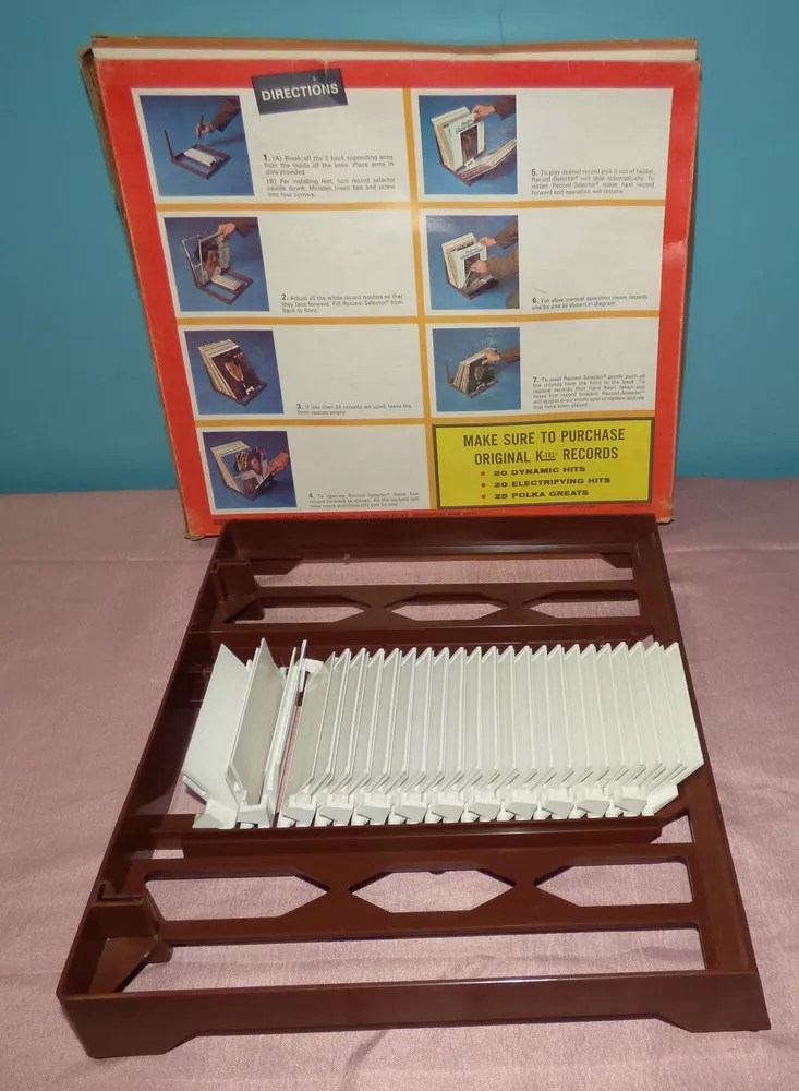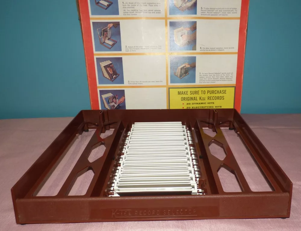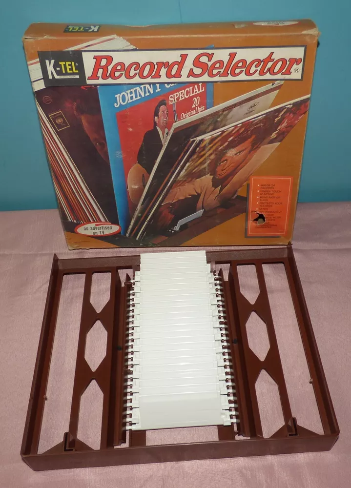 K-Tel Record Selector 24 disc LP album vinyl album holder Disc-o-Matic I don't think this was ever used but it is missing the two support arm pieces. Otherwise in great shape. Box does show some wear.