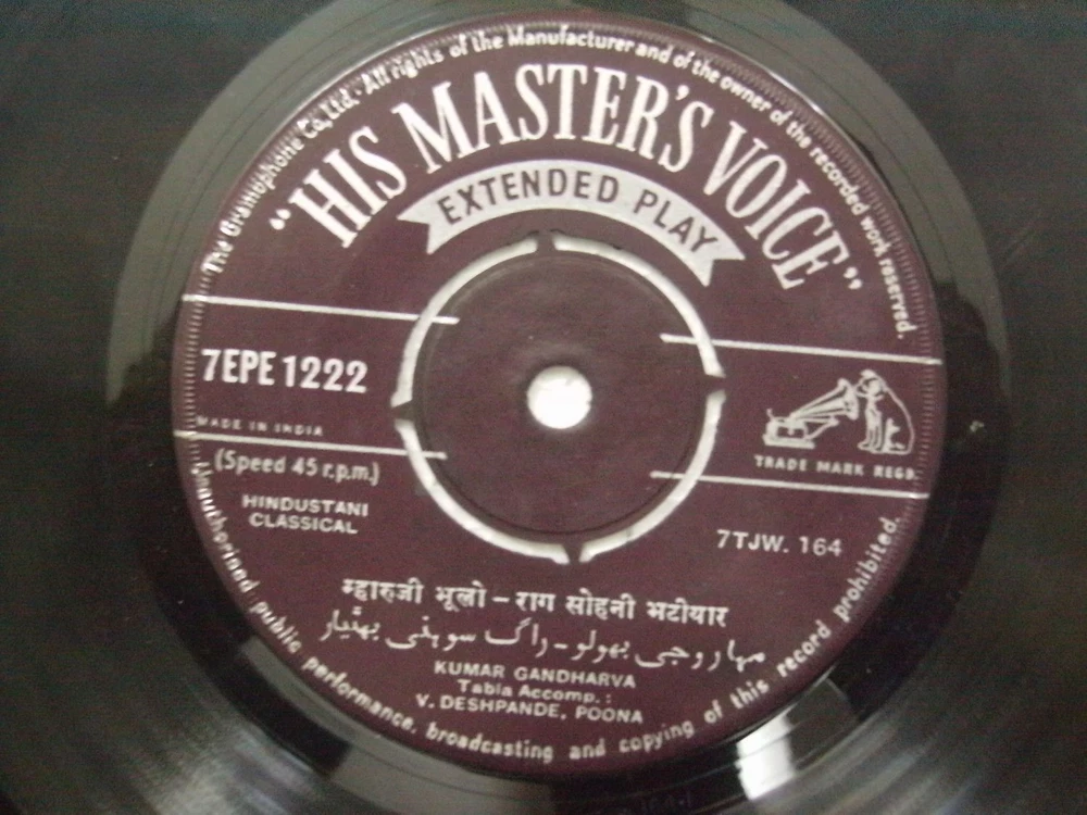 KUMAR GANDHARVA SOHINI BHATIYAR MANGAL DIN AAJ MALAWATI CLASSICAL EP VG+