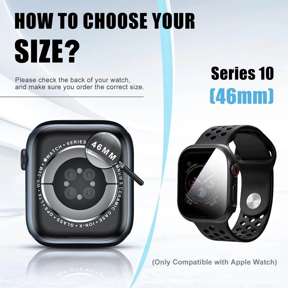 KUYUBMINYR 2 Pack Privacy Case for Apple Watch Screen Protector, Anti-Spy Temper Features: APPLE WATCH CASE COMPATIBLE MODELS - The 46mm Apple Watch screen protector case fits Apple Watch Series 10. Please check the back of your Apple watch to make sure you are ordering the correct size. APPLE WATCH SCREEN PROTECTOR - The Apple Watch Case is made of high quality frosted PC material and 9H tempered glass, covering the entire front and curved edges of the Apple Watch, providing your Apple Watch with drop, scratch and impact protection. ANTI-PEEKING APPLE WATCH COVER - Apple Watch cover adds a special privacy coating, the screen can only be seen by people directly in front of the watch screen. The anti-peep design will effectively protect your personal, private or sensitive information from prying eyes in public. TOUCH SENSITIVE APPLE WATCH CASE - The Apple Watch case is smooth and responsive to the touch, with precision cutouts to access all controls, sensors and Apple Watch features. The watch can be charged directly without removing the case and band, providing a comfortable wearing experience. EASY TO PUT ON AND TAKE OFF - The Apple Watch case has precise cutouts so you can easily snap the case on and off. And you can charge the watch directly without removing the case and band, providing a comfortable wearing experience. Features: APPLE WATCH CASE COMPATIBLE MODELS - The 46mm Apple Watch screen protector case fits Apple Watch Series 10. Please check the back of your Apple watch to make sure you are ordering the correct size. APPLE WATCH SCREEN PROTECTOR - The Apple Watch Case is made of high quality frosted PC material and 9H tempered glass, covering the entire front and curved edges of the Apple Watch, providing your Apple Watch with drop, scratch and impact protection. ANTI-PEEKING APPLE WATCH COVER - Apple Watch cover adds a special privacy coating, the screen can only be seen by people directly in front of the watch screen. The anti-peep design will effectively protect your personal, private or sensitive information from prying eyes in public. TOUCH SENSITIVE APPLE WATCH CASE - The Apple Watch case is smooth and responsive to the touch, with precision cutouts to access all controls, sensors and Apple Watch features. The watch can be charged directly without removing the case and band, providing a comfortable wearing experience. EASY TO PUT ON AND TAKE OFF - The Apple Watch case has precise cutouts so you can easily snap the case on and off. And you can charge the watch directly without removing the case and band, providing a comfortable wearing experience. eBay integration by