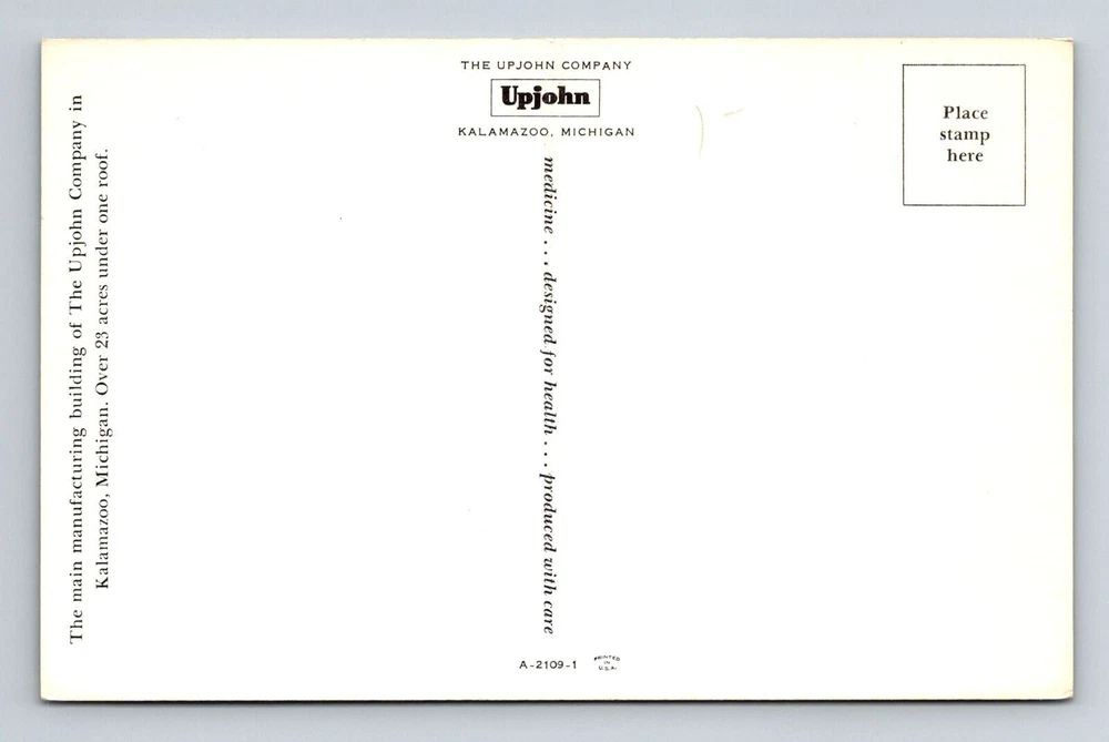 Kalamazoo MI-Michigan, Main Manufacturing Building Upjohn Co Vintage Postcard