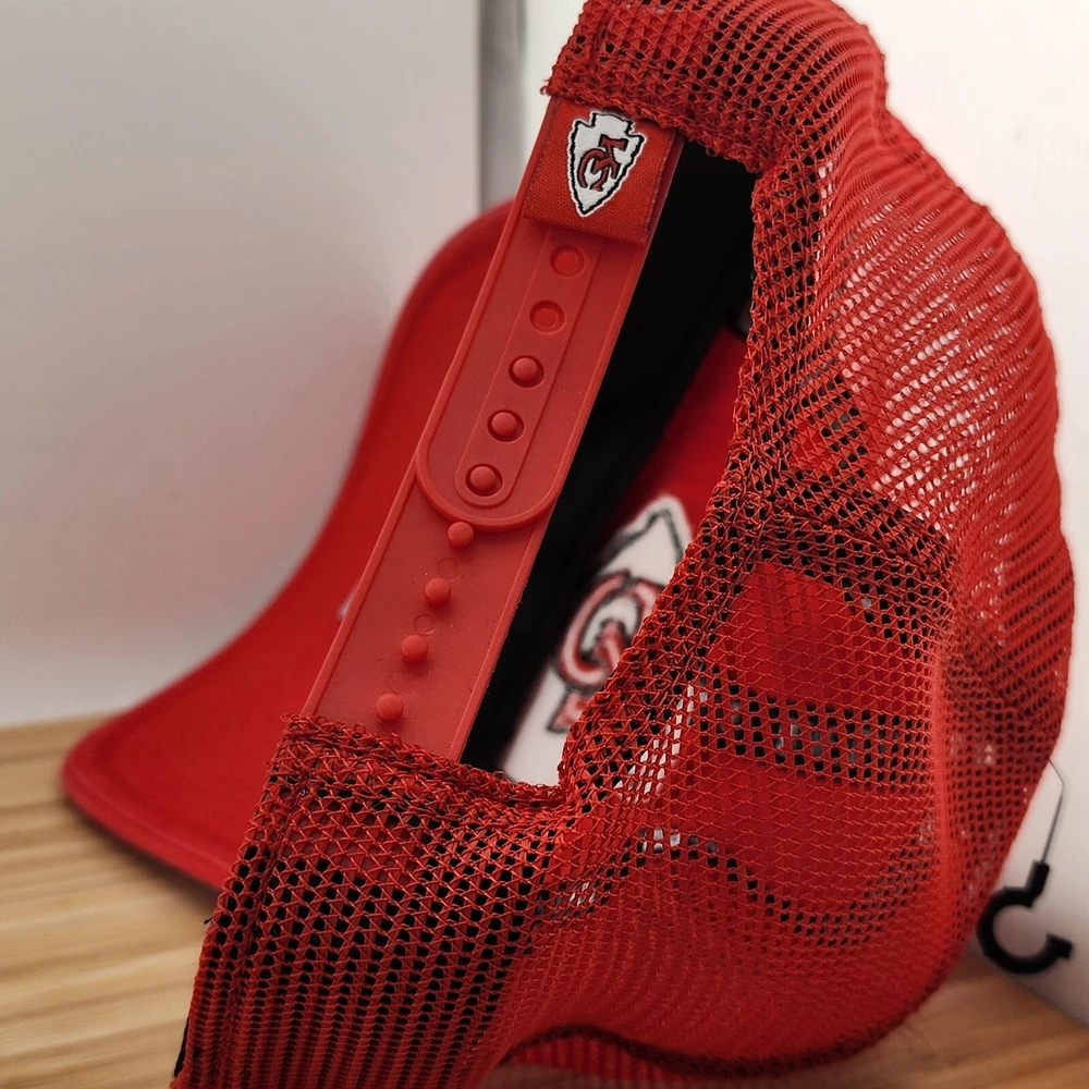 Show off your love for the Kansas City Chiefs with this stylish trucker hat from New Era. The red cap features the team's logo patch prominently on the front, making it a must-have accessory for any fan. The snapback style ensures a comfortable fit for all head sizes, while the mesh design provides breathability for those warmer days. Made in Vietnam, this high-quality hat is built to last and is perfect for any occasion. Whether you're watching the game at home or cheering on the Chiefs at the stadium, this hat is sure to make a statement. Get your hands on this officially licensed product and show your support for the team in style.