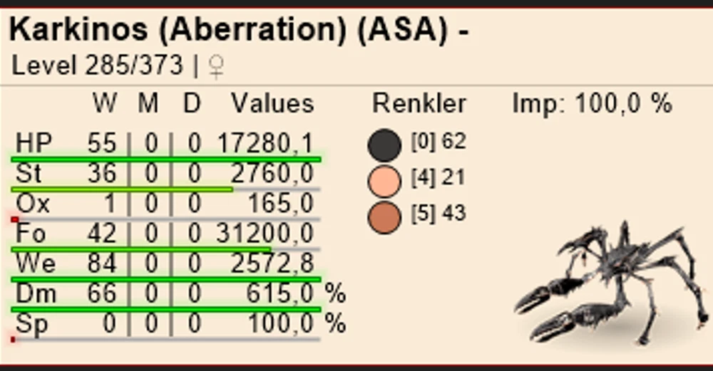 Karkinos 2572 WEIGHT %100 imprin RANDOM COLOR Ark Survival Ascended Official PVE