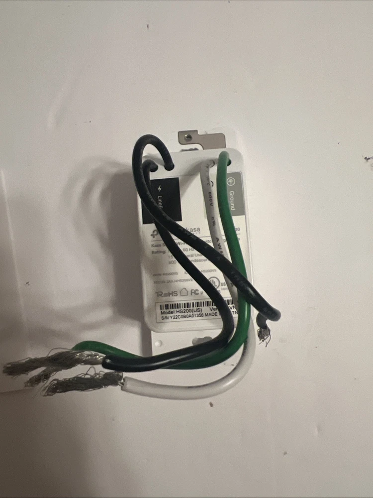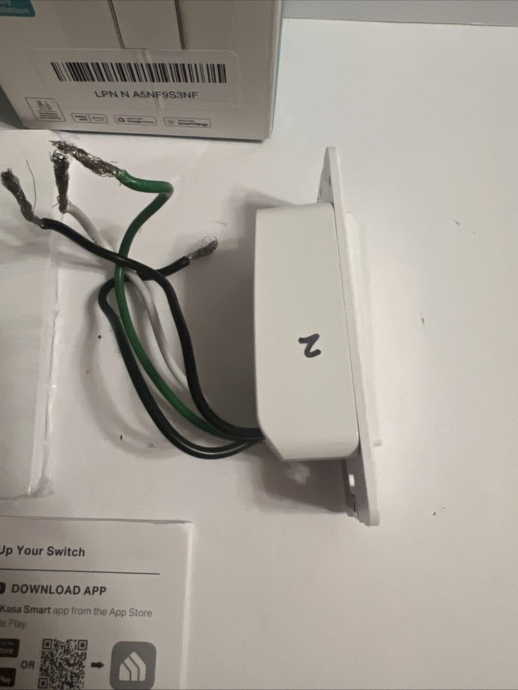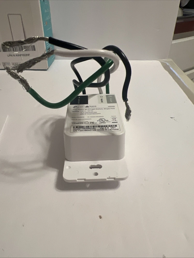 Missing Screws. I think it works but I am unable to test. I have no reason to believe it does not work but I want to make you aware it has not been tested. The Kasa Smart Light Switch HS200 is a white, single pole Wi-Fi light switch designed for easy control of your lighting fixtures. With a current rating of 15 Amps and a one-way switch type, this smart light switch offers a convenient off and smart switch operation mode. It is made of durable polycarbonate material and has dimensions of 1.5 x 3.3 x 5 inches. Additionally, it is designed for wall or pole mounting and has a SPST terminal for connectivity. Perfect for adding smart functionality to your home lighting setup, this TP-LINK USA product is a reliable choice for modern convenience.