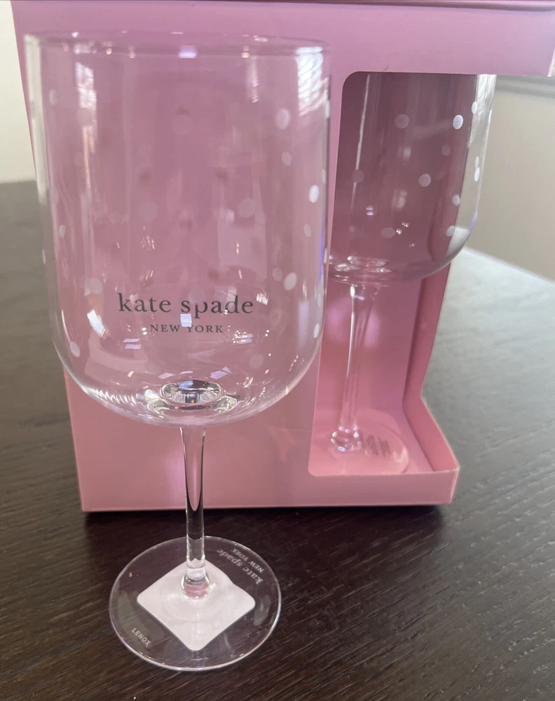 Elevate your wine experience with the Kate Spade x LENOX Larabee Dot Balloon Wine Glasses. This four-piece set boasts a modern round shape with a unique angular bowl design, featuring the iconic Kate Spade logo and a playful white dotted pattern. Crafted from premium glass material, these wine glasses offer a clear view of your beverage, making them perfect for all occasions, from casual gatherings to sophisticated soirees. Each glass has a generous 473 ml capacity and stands at 8.75 inches tall with a width of 3.5 inches, ensuring a comfortable grip and an elegant presentation on any table setting. These glasses are not only designed for durability but also for style, as they are adorned with Lenox's renowned decorations, adding a touch of luxury to your celebratory moments. Hand wash care is recommended to maintain their exquisite beauty.