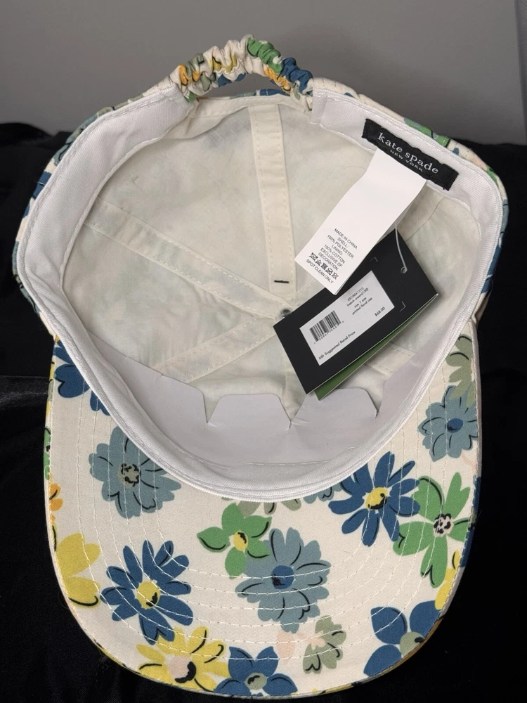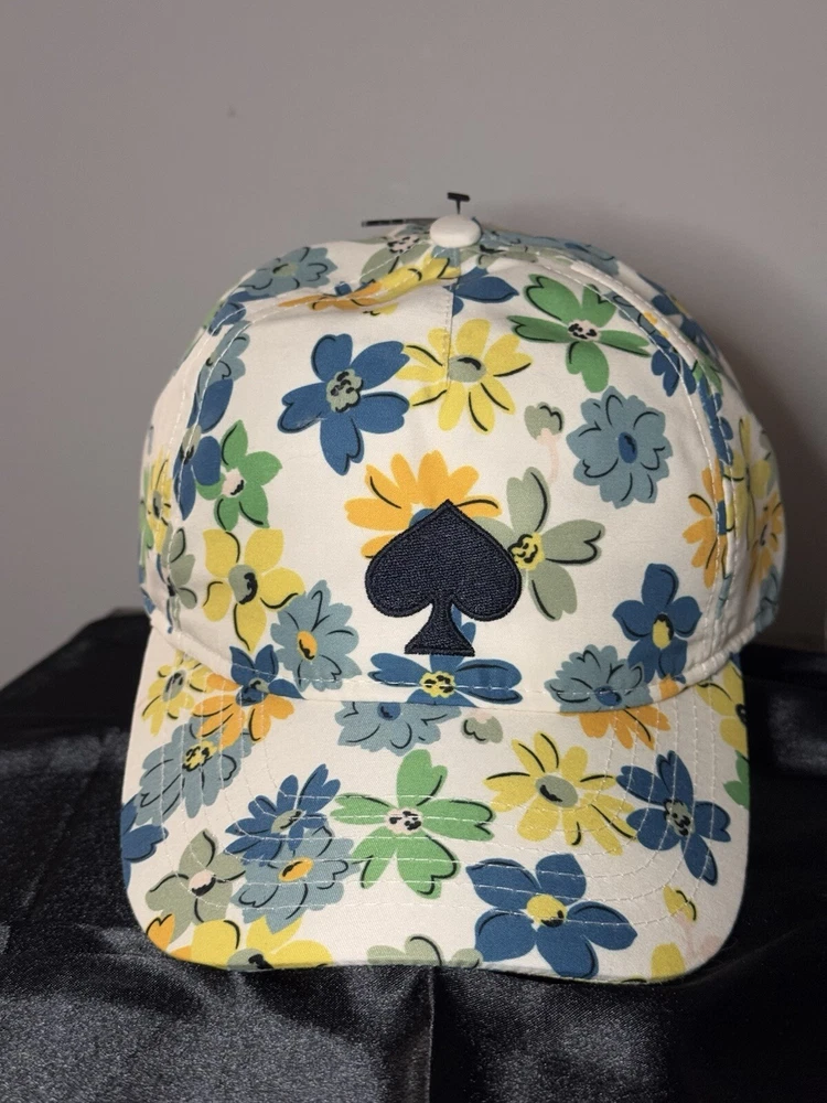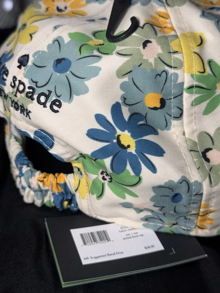 Country/Region of Manufacture:ChinaDepartment:WomenAccents:LogoBrand:Kate, Spade, New YorkCharacter Family:LogoMaterial:PolyesterHandmade:NoSeason:Summer, Spring, FallFabric Type:Blended FabricVintage:NoFeatures:Stretch, LogoOccasion:Casual, Travel, ActivewearColor:Cream, Yellow, Green Blue BlackPattern:FloralCharacter:DaisyStyle:Baseball CapTheme:DesignerPersonalize:NoSize:One Size