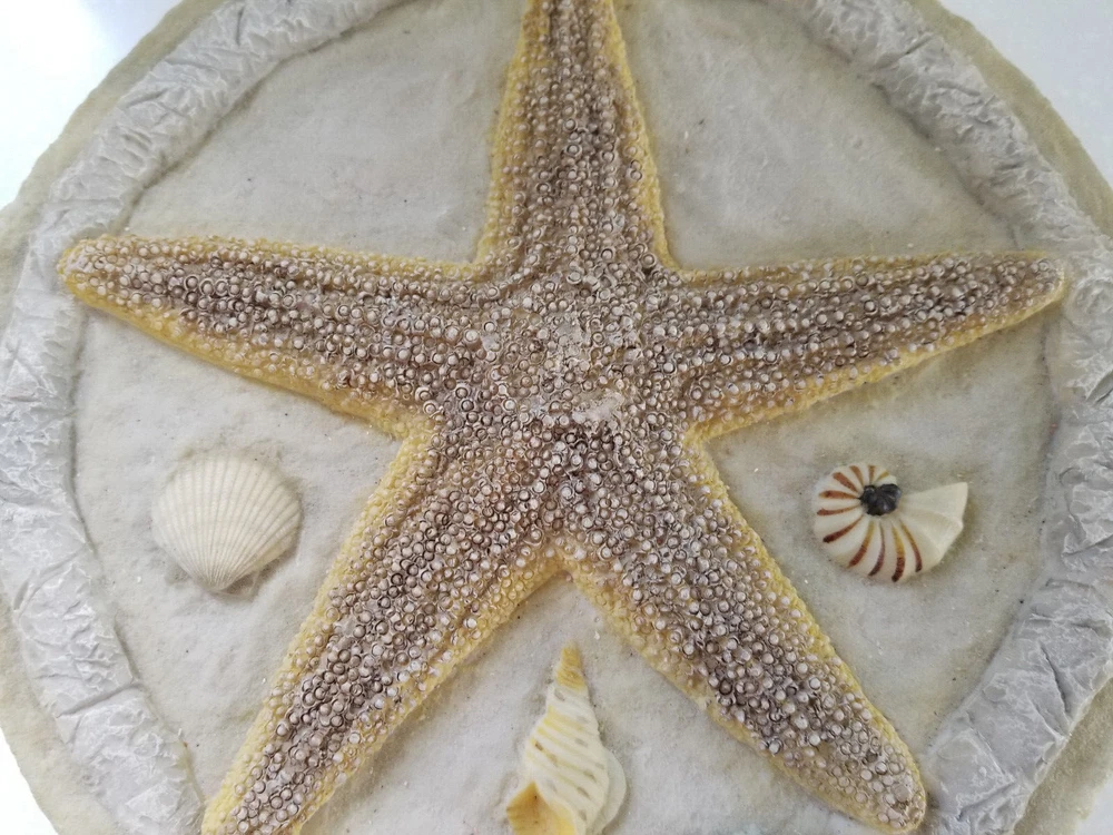 Kathleen Denis Waters Edge Seaside Stone Star Fish Wall Plaque. 12" x 12". Very Good Pre-owned Condition with no chips or cracks. Please View Photos.