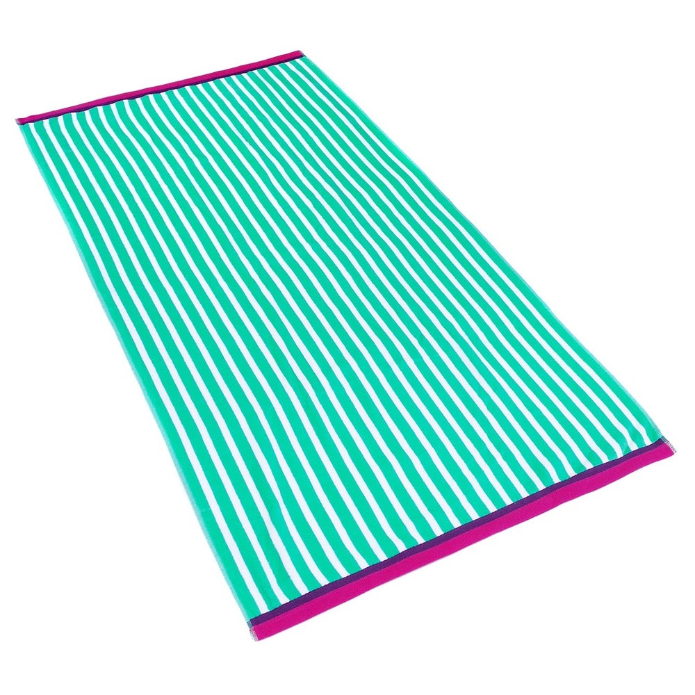 These Kaufman Racing Stripe towels are sure to be the most luxurious thing at the beach. Crafted with ultra soft cotton velour for a plush and soft feel, these towels are chic and trendy. This set of four features bright turquoise, coral, mint and orange colors in a fun striped design. After your day in the sun, simply toss these beach towels in the washing machine for easy care and maintenance. Features: Crafted using ultra soft cotton velour for soft and plush feelBright turquoise, coral, mint and orange colors in a fun striped pattern are perfect for a day at the beachSet of four towels includes one of each color optionToss in the washing machine for a quick freshen upThe digital images we display have the most accurate color possible. However, due to differences in computer Free Shipping Over $49.99* Details Kaufman Colorful Racing Striped Beach & Pool Towel - Large Cotton Towel - Soft & Product Description: These Kaufman Racing Stripe towels are sure to be the most luxurious thing at the beach. Crafted with ultra soft cotton velour for a plush and soft feel, these towels are chic and trendy. This set of four features bright turquoise, coral, mint and orange colors in a fun striped design. After your day in the sun, simply toss these beach towels in the washing machine for easy care and maintenance. Features: Crafted using ultra soft cotton velour for soft and plush feel Bright turquoise, coral, mint and orange colors in a fun striped pattern are perfect for a day at the beach Set of four towels includes one of each color option Toss in the washing machine for a quick freshen up The digital images we display have the most accurate color possible. However, due to differences in computer monitors, we cannot be responsible for variations in color between the actual product and your screen.