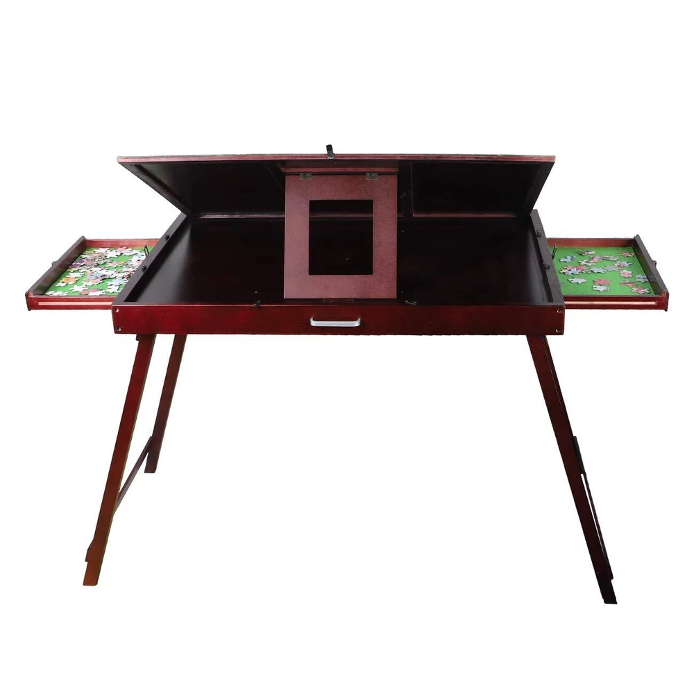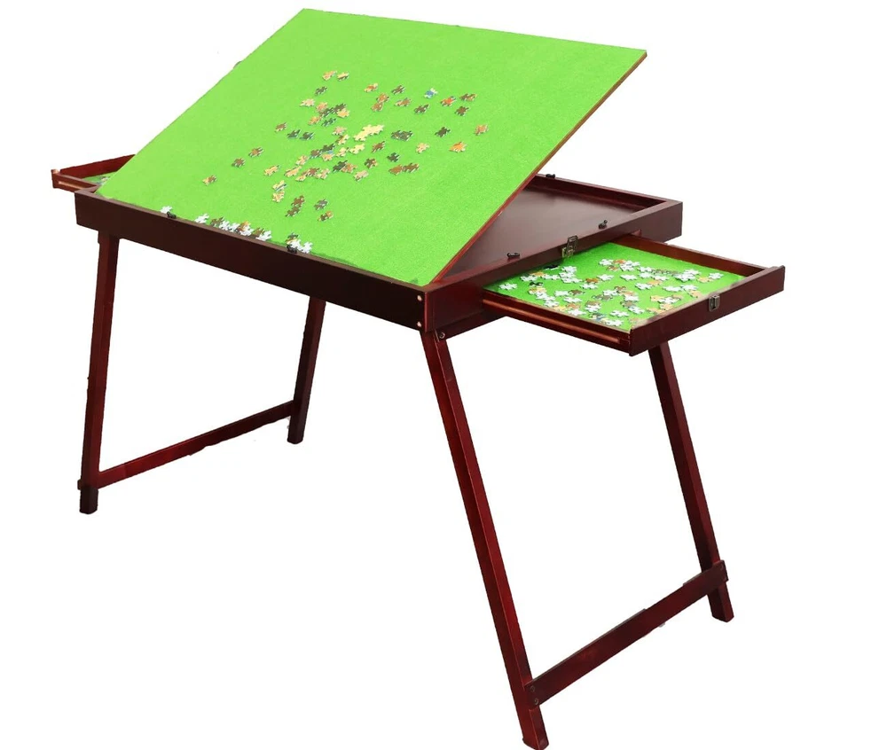 Kcelarec Wooden Jigsaw Puzzle Table with 2 Drawers for Puzzle Amateur,Large Portable Folding Puzzle Table with Tilting Non-Slip Surface,Jigsaw Table for 1500 Pcs Puzzles 【WOODEN PUZZLE TABLE WITH TILTABLE TABLE TOP】–This puzzle table comes with 3 adjustable height tilt table tops, you can adjust the tilt angle according to your own needs, and the tilt design can avoid long time puzzling back pain. 【PUZZLE TABLE WITH FOLDING FUNCTION】–This puzzle table can be folded,doesn't need any assembly. the folded size is: 36 x 27 x 2.5Inch. When you don't need to use, you can fold it up for easy storage. Puzzle table with handles so you can take it wherever you want. 【DRAWERS AND COVERS】–Our puzzle table has 2 drawers so you can easily organize and organize your puzzles. We also include a cover to protect your unfinished puzzles from being broken. And our cover can also be used as a table top, after cover the table, our puzzle table can be used as a sofa side table. 【PUZZLE TABLE WITH PREMIUM MATERIALS】–Our puzzle table is made of solid wood and weighs approximately 29 lbs. Can be used for a long time. There are wooden fences around the puzzle table to prevent the puzzles from falling. Our felt pads are also made of high quality material. With good anti-slip ability, when you tilt the puzzle at 60°, your puzzle will not slide. 【HIGH QUALITY ARFTER-SALES SERVICE】–We will provide high-quality after-sales service for our products, if you have any questions about our products, please contact us and we will reply you within 24 hours. Open size: 165x 68x 110cm H (65"x27"x44") Folding size: 90x68x6cm (36x27x2.5") Tiling green board size: 88x66cm (35"x26") Drawer size: 43x38cm (17"x15") NW/GW: 12kg/15kg(28lbs/32lbs) Features: Our jigsaw puzzle table is suitable up to 1500pcs puzzles This wooden jigsaw puzzle table have 2 individual drawers, to allow people organize similar color loose puzzle. Drawers have lock to prevent puzzle fall out. Drawers are removable, people can put drawer on lap for easy puzzling. Tiling design to avoid back pain from long time puzzling Large open leg space, can put on top of arm chair. Folding function to save space when not in use Storage function to store puzzle for playing next time Friction fabric to secure the puzzle in place High quality smooth surface Made from solid wood for long term use. Wooden fence to prevent puzzle fall out. Portable function, so you can bring to other people’s house to enjoy puzzle Beautiful center piece for decorating of your house. This is a must have for professional puzzle lovers. Extra individual space to enjoy your favorite puzzle. 2 layers of green fabric to secure your puzzle in between flat design, so the jigsaw puzzle table can fit under sofa or bed Extra individual space to enjoy your favorite puzzles. Three massive spaces to sort puzzles. Item includes: 1x jigsaw puzzle folding table 2x removable sorting drawers Shipping We offer FREE shipping on all orders! We use a selection of shipping services such as UPS, FedEx, USPS etc. We only ship to the lower 48 states, no APO/FPO addresses or PO Boxes allowed. Local pickups and combined shipping options are not provided at this time. Return You can return a product for up to 30 days from the date you purchased it. Any product you return must be in the same condition you received it and in the original packaging. Please keep the receipt. Payment We accept payment by any of the following methods: PayPal Please pay as soon as possible after winning an auction, as that will allow us to post your item to you sooner! Feedback Customer satisfaction is very important to us. If you have any problem with your order, please contact us and we will do our best to make you satisfied. Contact Us If you have any queries, please contact us via ebay. We usually respond within 24 hours on weekdays. Please visit our eBay store to check out other items for sale! Thank you for shopping at our store.
