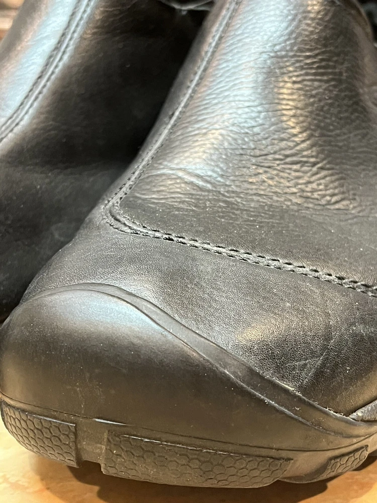 You are buying a pre-owned pair of Keen Shoes Men's 13 Black Leather Austin Clog Mule Slip On Comfort Everyday Work. These mules have normal wear, no major stains, holes or tears, plenty of life left. Ships Free with USPS Ground Advantage. Free Returns. Will Ship Within 24 Hours of Payment.
