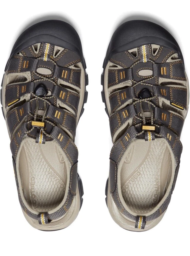 The Keen Newport H2 Mens Sandals are slip-on sandals designed for travel and casual occasions. They feature a gray and yellow trim color with a solid pattern and the KEEN logo as an accent. The sandals are waterproof and have a rubber outsole and insole for comfort. The upper material is synthetic and the lining material is synthetic. The sandals are perfect for outdoor activities in the summer, fall, or spring. They are available in size 8 and have a standard shoe width. The sandals are part of the KEEN Newport product line and are made in China.