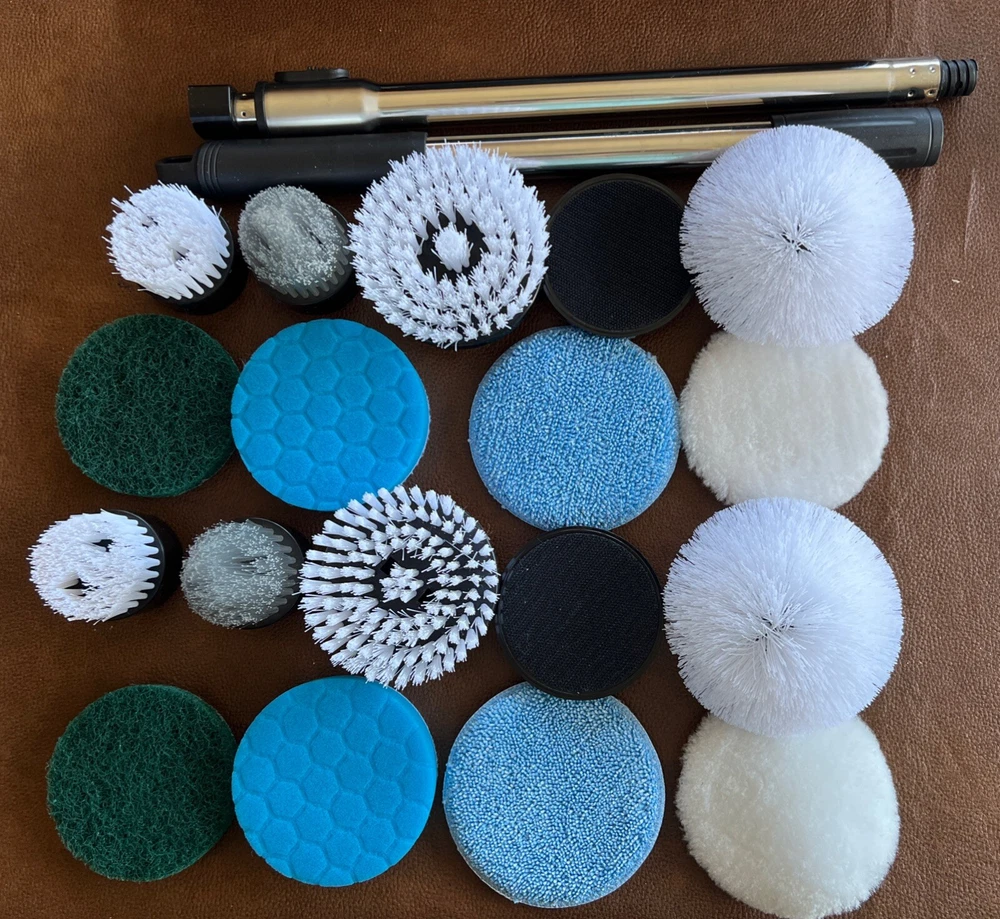 Unsuccessful in charging motor but will include if needed for parts or can fix charging issue Double set of brushes, pads, all are new and ideal for replacements to used or missing parts. One full handle in two parts. PLEASE NOTE: The item you see is the EXACT item you are receiving. No stock photos. The pictures show the best description of the condition of the item.