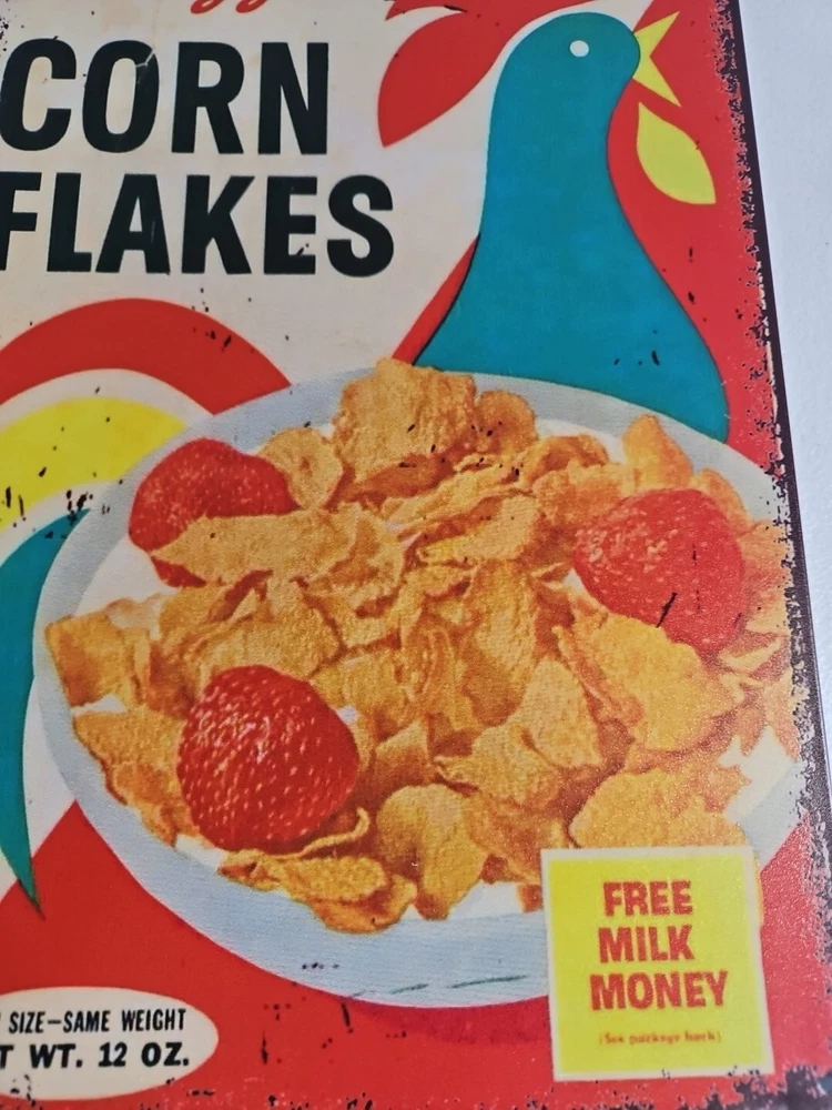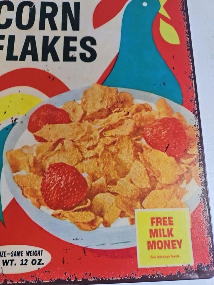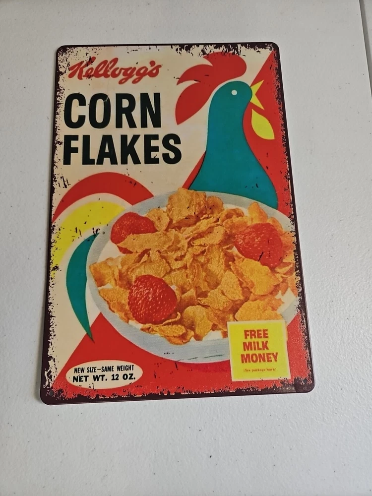 Kellogs Corn Flakes, Rustic Looking, Metal Sign, 8x12. Condition is New. Shipped with USPS Ground Advantage.