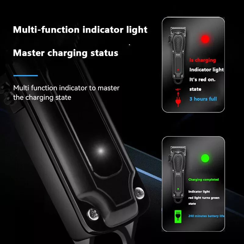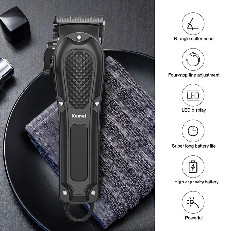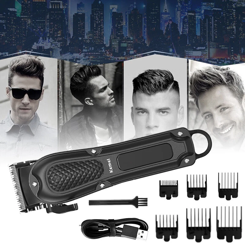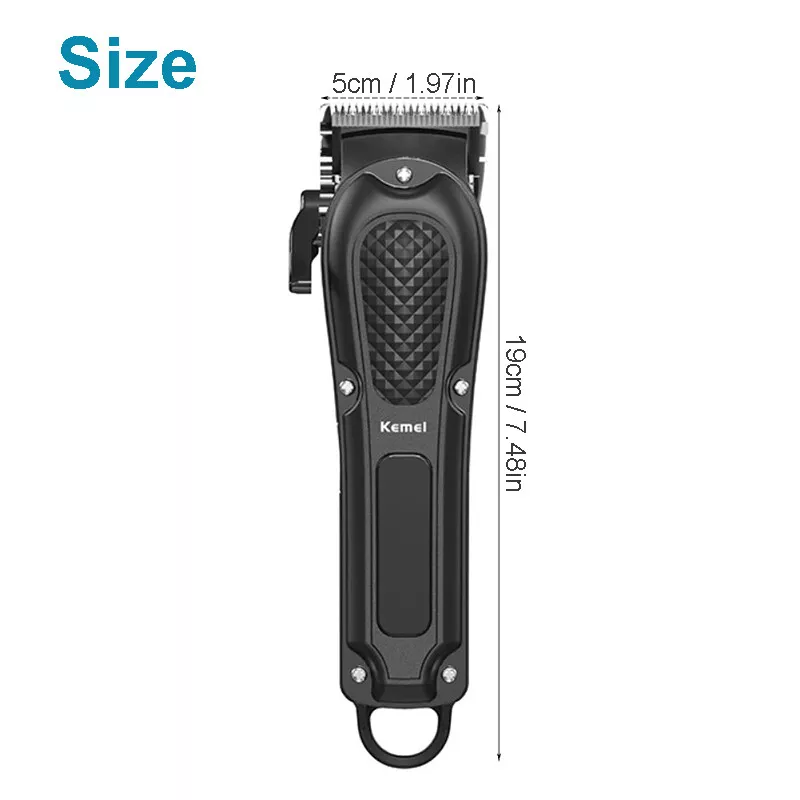 Kemei Professional Hair Clippers Cordless Trimmer Beard Cutting Machine Barber Product Description Description: 9PCS Mens Hair Clippers Grooming Kit: This is a complete barber sets for cutting hair, which includes a electric hair clipper, cleaning brush, USB charge line and a full-range of guard attachments (3/6/10/13/16/19mm) for different hair lengths. Cordless & Corded: Hair trimmer can be with cord or cordless which is super convenient for self-cutting. Universal charging - One full charge last up to 240 minutes of use. When the power of the hair clipper is used up,This hair trimmer supports plug and play. When charging, the display light is red, after fully charging, the display light is green. 4 Gear Adjustable Taper Lever: Easily change the closeness of your cut between guide comb lengths, move the lever up for the closest cut & move it down for a longer cut (From 0.2mm to 0.6mm). Quiet, Powerful Rotary Motor: The electric clipper's motor is powerful enough to cut through even the thickest hair with ease. The teeth on the blade are tightly line up with each other to remove hair with no snagging or pulling, offering an effective haircut. Grooming Kit for Men: Whether for barber or personal use, you just need a set of high-quality hair clippers and perfectly solve all the things you need in your haircut. Perfect for men, women, children. You can also give it to your lover as a birthday gift, Christmas gift, Valentine's Day gift. Specification: Item Type: Electric Shaver Model: KM-1071 Material: ABS + Stainless Steel Color: Black Power: 3W Input: DC 5V Power Type: Rechargeable Charging Time: 3hrs Usage Time: 240mins 4 Gear: 0.2 / 0.3 / 0.4 / 0.6mm Limit Comb Size: 3 / 6 / 10 / 13 / 16 / 19mm Size: 5 x 19cm / 1.97 x 7.48in Feature: Twin Blade, Cordless, Rechargeable Package Included: 1PCS Electric Shaver 6PCS Limit Combs 1PCS Cleaning Brush 1PCS USB Charging Cable