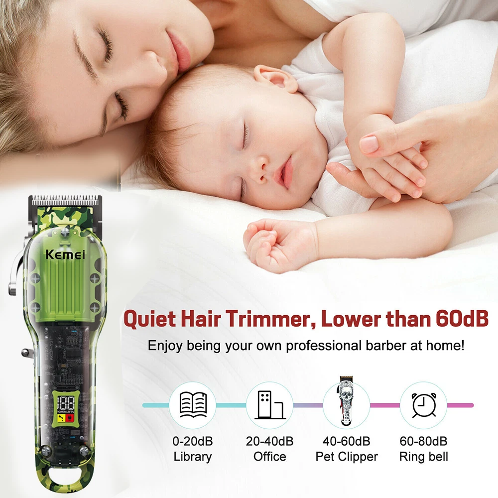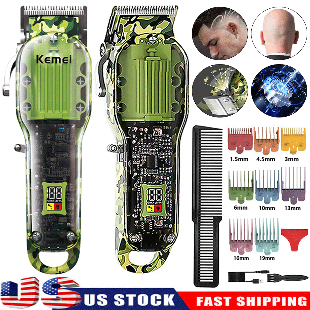 Features: 1.Powerful long-life motor cute-angled moving blade, sharp and durable 2.Considerate and digitalized smart LCD display for reminder, 6300rpm/min strong power, Less than 55dB low noise, Once charging can last up to 240-min working time 3. Newly designed acrylic material, sturdy and durable, with a beautiful appearance, you can directly see the internal parts. Specification : Brand : KM-1926 Machine Weight : 267g Machine Size : 18*4.5*3cm / 7*1.7*1.2 Inch Voltage : 100-240V Frequency : 50/60Hz Batt e ry : 8W Charging Time : 3 Hours Using Time : 240 Mins Power Supply : USB Recharge Cleaning Way : Cleaning With Brush Package list : 1 * Hair clipper 8* Limit combs (1.5/3/4.5/6/10/13/16/19mm) 1 * USB cable 1 * Cleaning brush 1*Manual