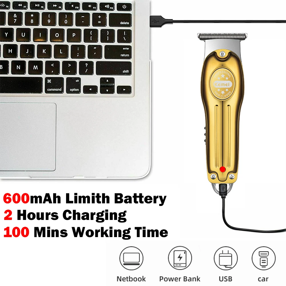 Description Model: KM-2269 Power: 5W Battery capacity: 2000mAh Charging time: 3 hours Usage time: 300 minutes Charging type: USB charging - Professional trimmer hair finishing machine designed for men, the Kemei KM-2269 features a high-performance T-Blade providing precise and smooth cutting. - Equipped with a powerful 7500RPM motor for fast and efficient trimming, ensuring a clean and sharp look in no time. - The digital LCD Display allows for easy monitoring of battery life and speed settings, enhancing user convenience and control. - With a USB Interface for quick and convenient charging, the Kemei KM-2269 ensures a reliable power source whenever needed. - Crafted with a durable and sharp ceramic blade, along with zero gap adjustment for maximum precision and cutting efficiency, making it the ideal choice for professional grooming needs. Package list 1 x machine 4 x limit combs 1 x brush 1 x charge cable Note: Due to the limitation of air transport, this product does not contain oil,Please understand. If you have any questions, please feel free to contact us, please do not leave any negative feedback, we will deal with it as soon as possible, thank you