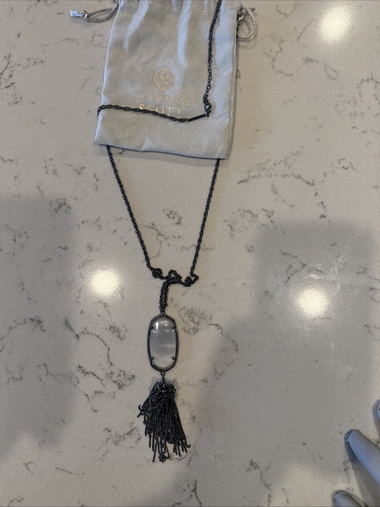 Kendra Scott Rayne White Shell Mother Of Pearl Tassel Pendant Gold Tone Necklace