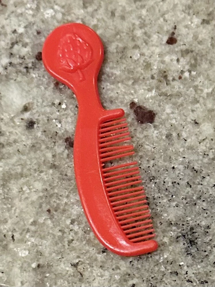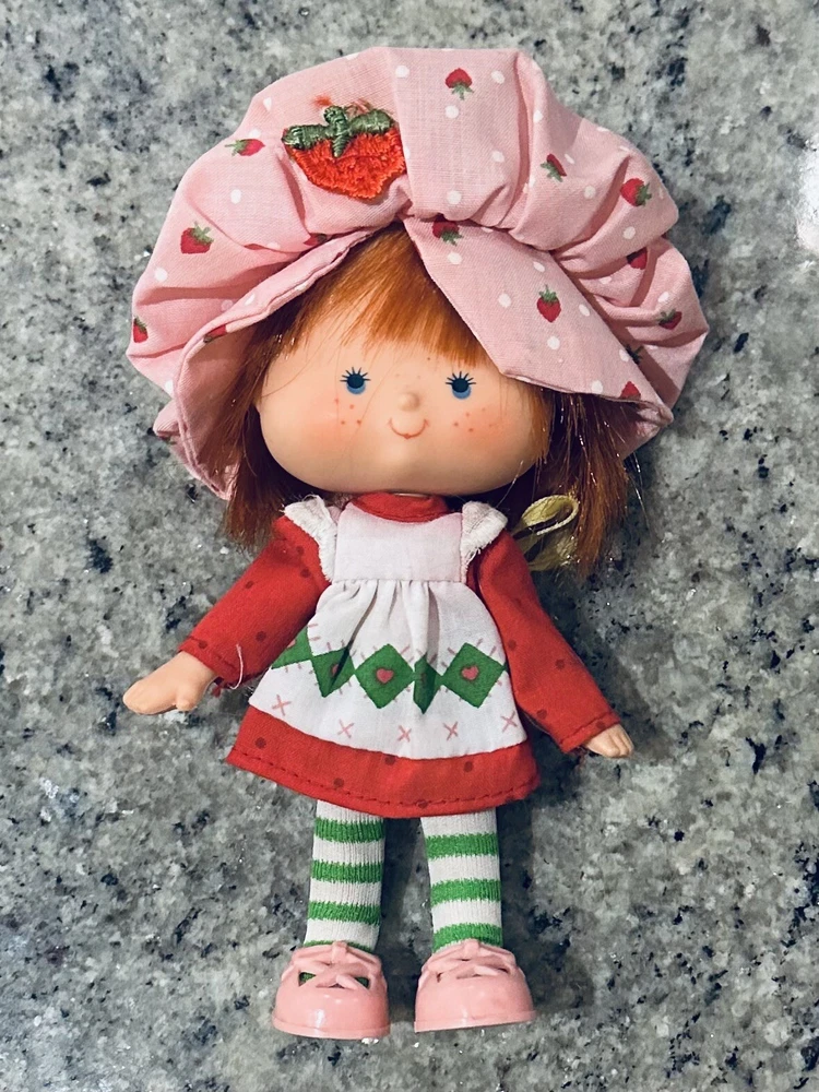 This Kenner Strawberry Shortcake doll figure is a first edition from 1979, making it a wonderful addition to any collection. The doll has red straight hair, blue eyes, and a light complexion. It comes with clothes, hat, shoes, and a comb. Comb is missing one tooth. Ships from Dallas, Texas.