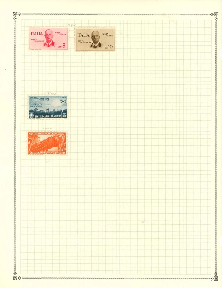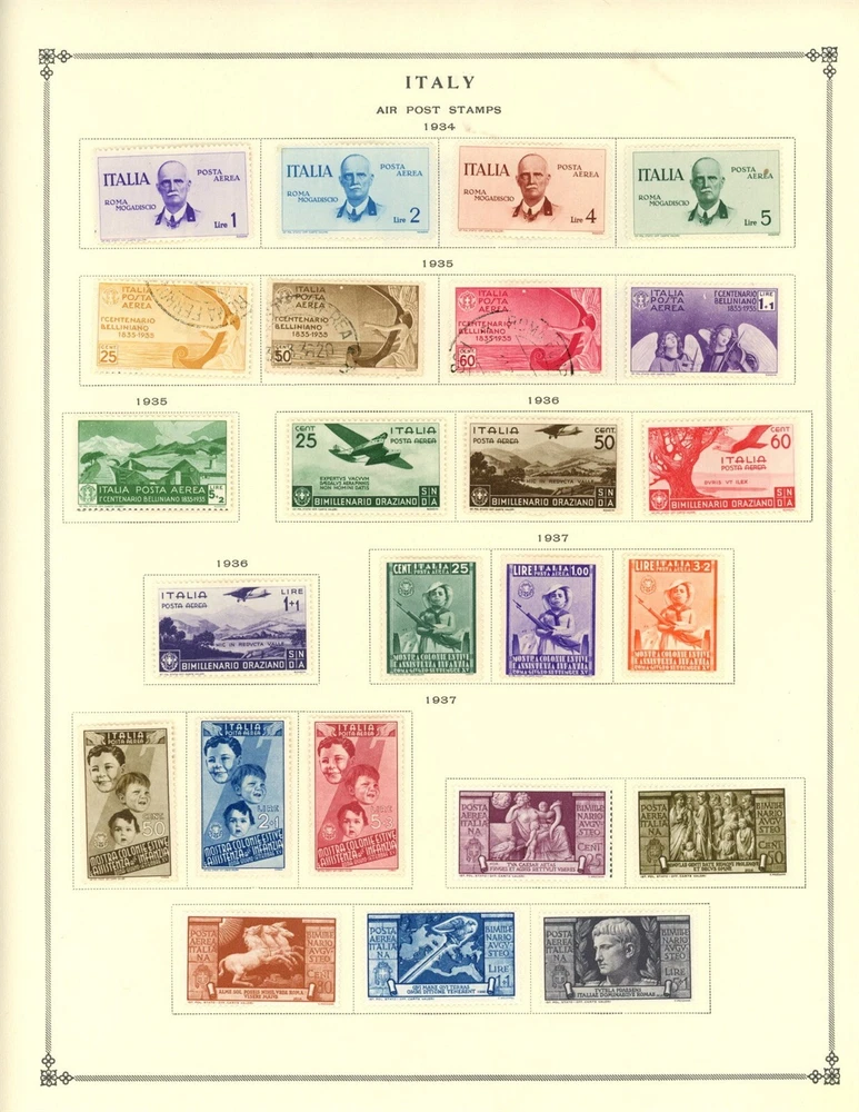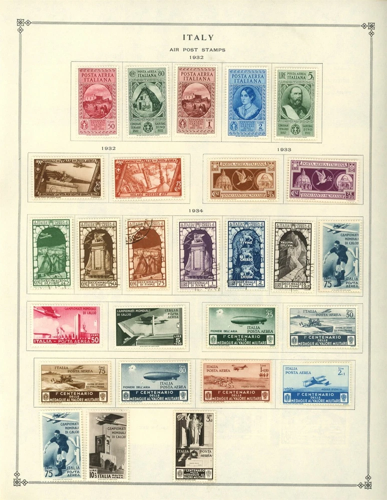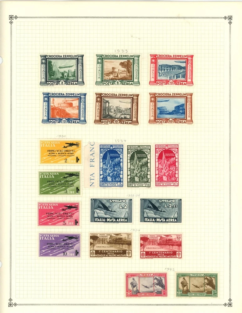 Kenr2: Italy Air Mail Collection from Clean 1840-1940 Scott Album This collection is from a classic Scott International Volume I 1840-1940 with many extra pages added. The is extremely neat and clean including the stamps. The pages are ready to be inserted into your album if you want. The stamps are very lighly hinged probably using Dennison hinges, they peel off effortlessly. All stamps included in the auction are shown and be sure to see the pictures shown below the description not just those at the top of the page. The stamps will be shipped on pages as shown with stiffener to prevent bending. Unfortunately forgeries are a part of stamp collecting and almost every collection has some. I buy large quality collections from major auction houses, break them down and bring them to Ebay. I don't attempt to identify forgeries or reprints or purge them from the collections I sell. I sell the country collections intact as received without removing any stamps and use large scans so the bidder can evaluate the stamps for themselves. So please look at the scans and bid on what you see. You may be interested in our other eBay listings . Welcome to our Stamp Business: Kenr2. Policies; We hope to bring an interesting and unusual selection of items to Ebay each week. Our general focus is on country collections on pages but we often have WW Revenues, Proofs and occasionally collections and Postal History. Our 1st priority is that you are satisfied with your buying experience with us, and we work hard to make this happen. I try hard to accurately describe all stamps and covers and show good pictures. Occasionally I miss something or simply make a mistake, but if you are unhappy with an item for any reason please contact us using the Ebay message system and we will make it right. Member of APS and USPCS Shipping; We keep our shipping charges as low as possible and never charge a handling fee. For the summer we are offering FREE shipping on all Domestic Purchases. Please wait for our Invoice to take advantage of this offer. NOTE: Ebay rules require tracking and the use of USPS shipping labels on all shipments. Therefore, we are not able to use postage stamps to mail our shipments. NOTE to INTERNATIONAL bidders: We cannot combine items for shipping to International destinations. If you think these shipping costs are too high I respectfully ask you NOT to bid. Ebay/USPS labels are printed automatically with a customs form. We are not responsible for any customs or VAT charges, again we cannot make any exceptions. Thanks for Looking Powered by SixBit's eCommerce Solution