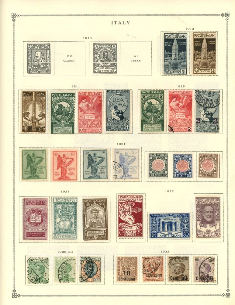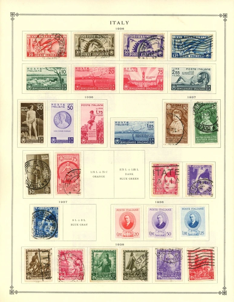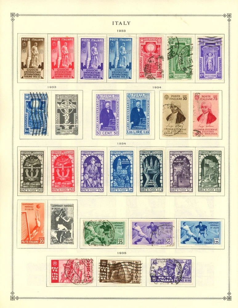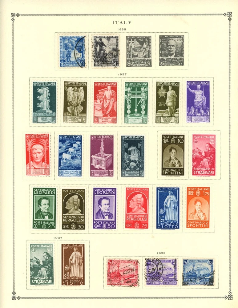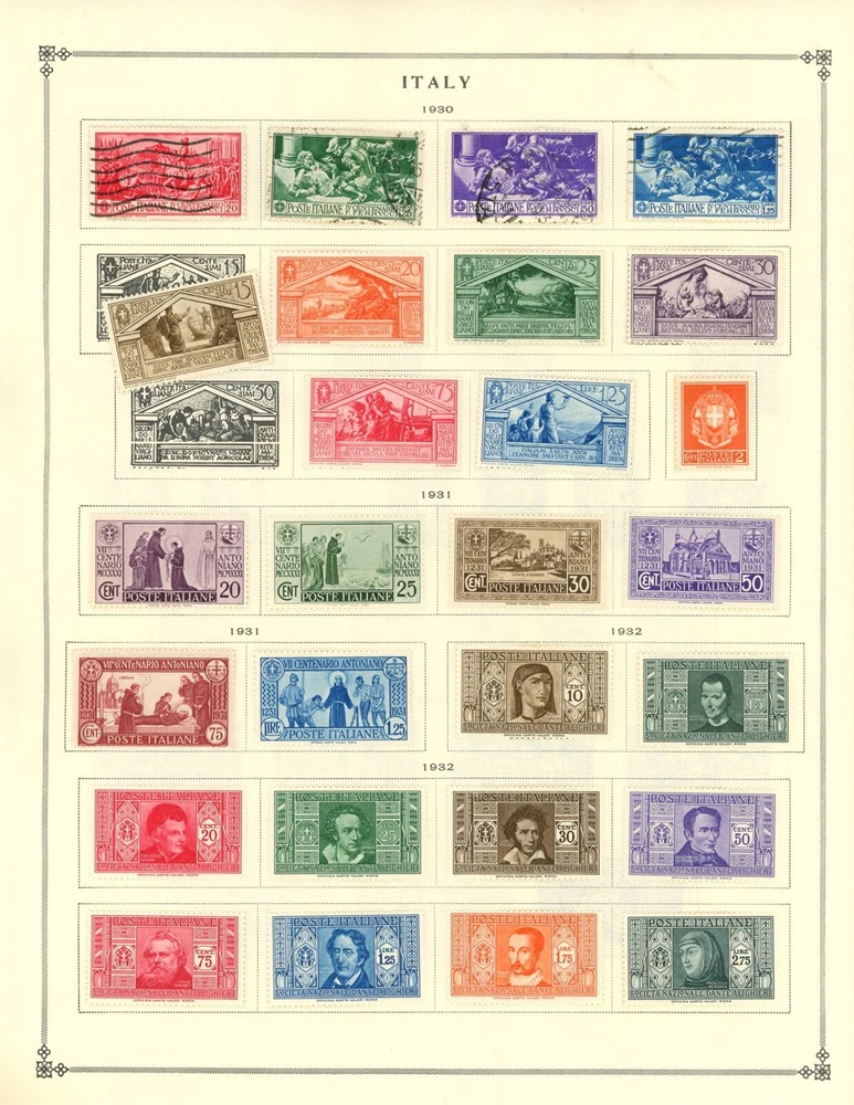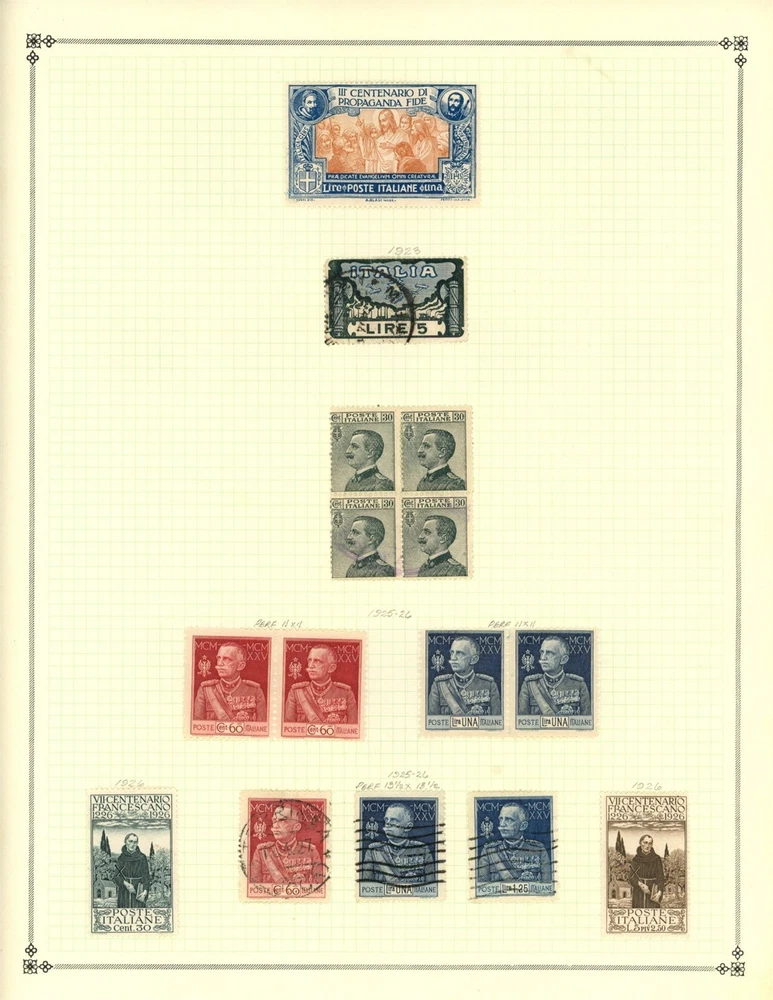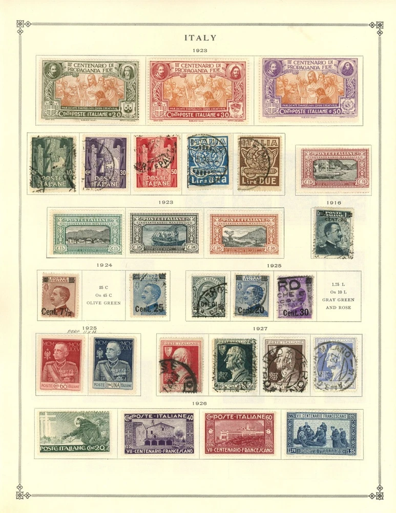 Kenr2: -Italy Collection from Clean 1840-1940 Scott Album This collection is from a classic Scott International Volume I 1840-1940 with many extra pages added. The is extremely neat and clean including the stamps. The pages are ready to be inserted into your album if you want. The stamps are very lighly hinged probably using Dennison hinges, they peel off effortlessly. All stamps included in the auction are shown and be sure to see the pictures shown below the description not just those at the top of the page. The stamps will be shipped on pages as shown with stiffener to prevent bending. Unfortunately forgeries are a part of stamp collecting and almost every collection has some. I buy large quality collections from major auction houses, break them down and bring them to Ebay. I don't attempt to identify forgeries or reprints or purge them from the collections I sell. I sell the country collections intact as received without removing any stamps and use large scans so the bidder can evaluate the stamps for themselves. So please look at the scans and bid on what you see. You may be interested in our other eBay listings . Welcome to our Stamp Business: Kenr2. Policies; We hope to bring an interesting and unusual selection of items to Ebay each week. Our general focus is on country collections on pages but we often have WW Revenues, Proofs and occasionally collections and Postal History. Our 1st priority is that you are satisfied with your buying experience with us, and we work hard to make this happen. I try hard to accurately describe all stamps and covers and show good pictures. Occasionally I miss something or simply make a mistake, but if you are unhappy with an item for any reason please contact us using the Ebay message system and we will make it right. Member of APS and USPCS Shipping; We keep our shipping charges as low as possible and never charge a handling fee. For the summer we are offering FREE shipping on all Domestic Purchases. Please wait for our Invoice to take advantage of this offer. NOTE: Ebay rules require tracking and the use of USPS shipping labels on all shipments. Therefore, we are not able to use postage stamps to mail our shipments. NOTE to INTERNATIONAL bidders: We cannot combine items for shipping to International destinations. If you think these shipping costs are too high I respectfully ask you NOT to bid. Ebay/USPS labels are printed automatically with a customs form. We are not responsible for any customs or VAT charges, again we cannot make any exceptions. Thanks for Looking Powered by SixBit's eCommerce Solution