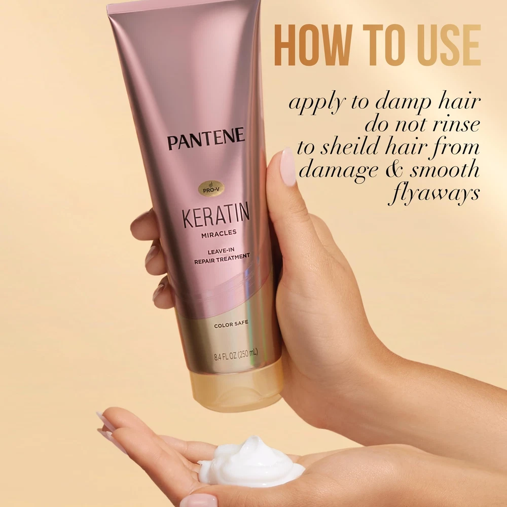 Keratin Leave-In Conditioner with Argan Oil, Protein Treatment for Dry, Damaged & Color-Treated Hair, Repairs Split Ends & Protects from Damage, Formaldehyde-Free, 8.4 Fl Oz SMOOTHS AND MOISTUIRZES: Restore dry, damaged hair to silky smoothness by reducing frizz and instantly repairing split ends. This formula deeply moisturizes to leave your hair soft and manageable. KERATIN INFUSED: Enriched with Hydrolyzed Keratin Protein, Argan Oil, and Pro-Vitamin B5, this formula strengthens and nourishes your hair, leaving it smooth, shiny, and resilient. GET PROTECTED: Strengthen your hair with a formula that forms new hair bonds to help shield strands from damage. Enjoy enhanced protection and resilience for healthier, more durable hair. SAFE FORMULA: Specially designed for color-treated and chemically damaged hair, this formula is formaldehyde-free, ensuring gentle care while maintaining vibrant color and healthy strands. LEAVE-IN AND GO: This easy-to-use formula provides instant nourishment and hair repair, allowing you to leave it in and go about your day with beautifully repaired and protected hair. KERATIN SMOOTH Transform your hair to cashmere-like softness after only 1 use with the Pro-V Keratin Miracles Leave-In Repair Treatment. This leave-in treatment is uniquely designed for dry, damaged hair, fighting the many facets of hair troubles including split ends, frizz, and dryness. It’s Pro-V Keratin repair formula forms new hair bonds to strengthen and help shield strands from damage. This powerful treatment visibly repairs split ends for healthy-looking hair with instant cashmere-like softness. Now that’s the kind of luxury inspired by salon keratin treatments! The Keratin Miracles Leave-In Treatment Pro-V formula is infused with Hydrolyzed Keratin Protein, Argan Oil, and Pro-Vitamin B5, and gives your hair the ultra-rich moisture it deserves to achieve that Keratin-smooth hair you've been dreaming of. The luxurious Pro-V formula with hydrolyzed keratin awakens damaged hair by penetrating deep into the core of your hair shaft - moisturizing it and repairing damage from root to tip. Hair becomes undoubtedly nourished inside and out. For undeniable smoothness, manageability, and frizz control, use the Pro-V Keratin Miracles Leave-In Repair Treatment. HOW TO USE After your shower, squeeze a dime-sized amount of the Prov-V Keratin Miracles Leave-In Repair Treatment into your hands, rubbing your palms together to emulsify. Apply the product to damp hair and work in, focusing on the mid-length to the ends of the hair shaft. Add more product as needed. Do not rinse out. Style your hair as desired. Shipping We offer FREE shipping on all orders! We ship within Three business days of payment, usually sooner. We use a selection of shipping services such as UPS, FedEx, USPS etc. We only ship to the lower 48 states, no APO/FPO addresses or PO Boxes allowed. Local pickups and combined shipping options are not provided at this time. Return You can return a product for up to 30 days from the date you purchased it. Any product you return must be in the same condition you received it and in the original packaging. Please keep the receipt. Payment We accept payment by any of the following methods: PayPal Please pay as soon as possible after winning an auction, as that will allow us to post your item to you sooner! Feedback Customer satisfaction is very important to us. If you have any problem with your order, please contact us and we will do our best to make you satisfied. Contact Us If you have any queries, please contact us via ebay. We usually respond within 24 hours on weekdays. Please visit our eBay store to check out other items for sale! Thank you for shopping at our store.