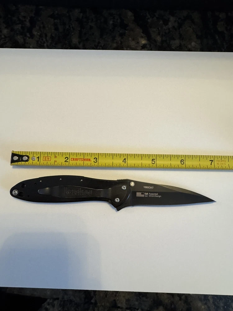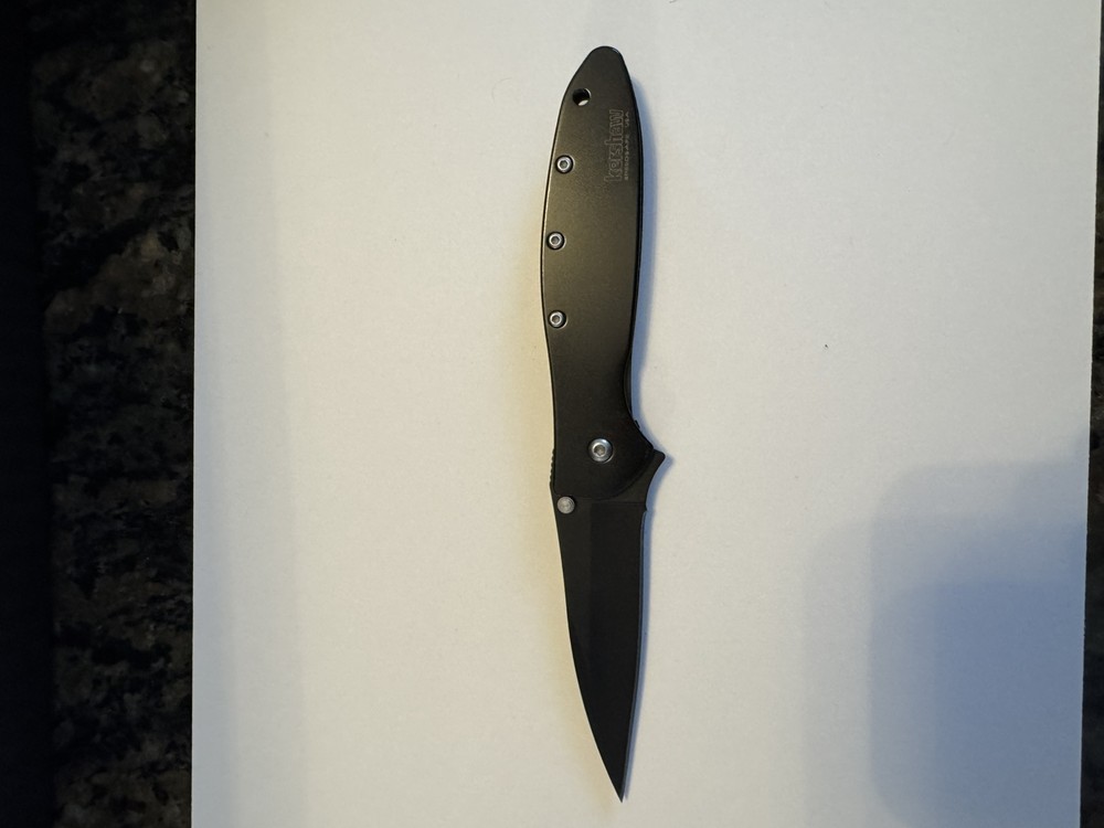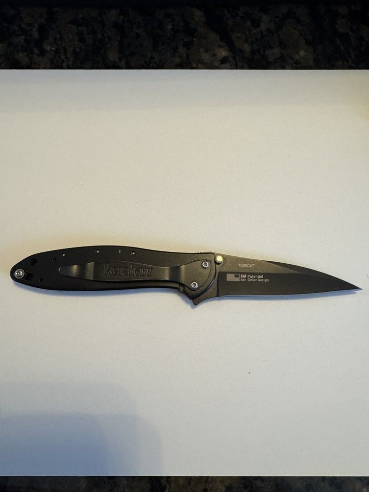 No Box. Excellent condition, please check photos for details and condition. Kershaw 1660 Leek Assisted Opening Liner Lock Knife Black Aluminum (3" Black) add to your collection/display. cardboard box for shipping.