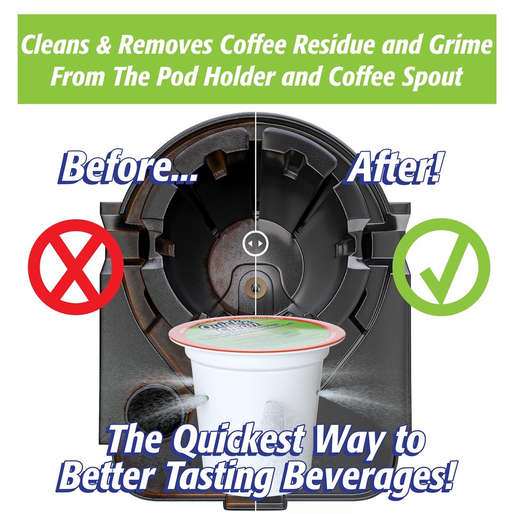 Quick & Clean [6-Pack] Keurig Cleaning Pods - K Cup Cleaner Pod For Keurig - 2.0 Coffee Machine Compatible, Removes Stains, Non-Toxic and Eco-Friendly Get That Fresh Coffee Taste Back - Over time, Keurig (TM) machines build up old grinds and residues, tainting the flavor of your coffee and espresso. Quick and Clean Keurig cleaning pods use a proprietary cleaning formula that cuts through and eliminates these residues, bringing taste back to normal Lengthens The Life Of Your Machine - Residue built up in the pack holder, funnel & exit needle can eventually cause damage to your machine. Regular cleaning using Quick & Clean's cups restores these elements and enhances the lifespan of your machine. Use in conjunction with a Keurig descaling solution for best results (not included) Safe & Easy To Use - Completely safe - non-toxic, biodegradable and gentle on your Keurig brewer (1.0 & 2.0- compatible). Easy to use - simply brew one large cycle with the k cup cleaner pod for Keurig, then one large cycle with water-only (discard liquid & keurig cleaner pod) Incredible Value - With 6 Keurig rinse pods per package and incredible cleaning effectiveness, Quick & Clean's k cup cleaner pods provide 3+ months of cleaning power (based on daily usage). No need to try using soap or non-purpose-specific cleaners on your machine. No mess, no fuss - the easy solution Please note: This is an aftermarket cleaning product (produced by Quick & Clean). We have no affiliation with or endorsement from any of the manufacturers mentioned. Use in conjunction with descaling fluid, replace filters, and use proper cartridges for best results Shipping We offer FREE shipping on all orders! We ship within Three business days of payment, usually sooner. We use a selection of shipping services such as UPS, FedEx, USPS etc. We only ship to the lower 48 states, no APO/FPO addresses or PO Boxes allowed. Local pickups and combined shipping options are not provided at this time. Return You can return a product for up to 30 days from the date you purchased it. Any product you return must be in the same condition you received it and in the original packaging. Please keep the receipt. Payment We accept payment by any of the following methods: PayPal Please pay as soon as possible after winning an auction, as that will allow us to post your item to you sooner! Feedback Customer satisfaction is very important to us. If you have any problem with your order, please contact us and we will do our best to make you satisfied. Contact Us If you have any queries, please contact us via ebay. We usually respond within 24 hours on weekdays. Please visit our eBay store to check out other items for sale! Thank you for shopping at our store.